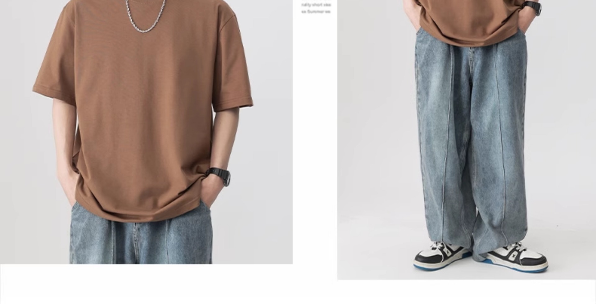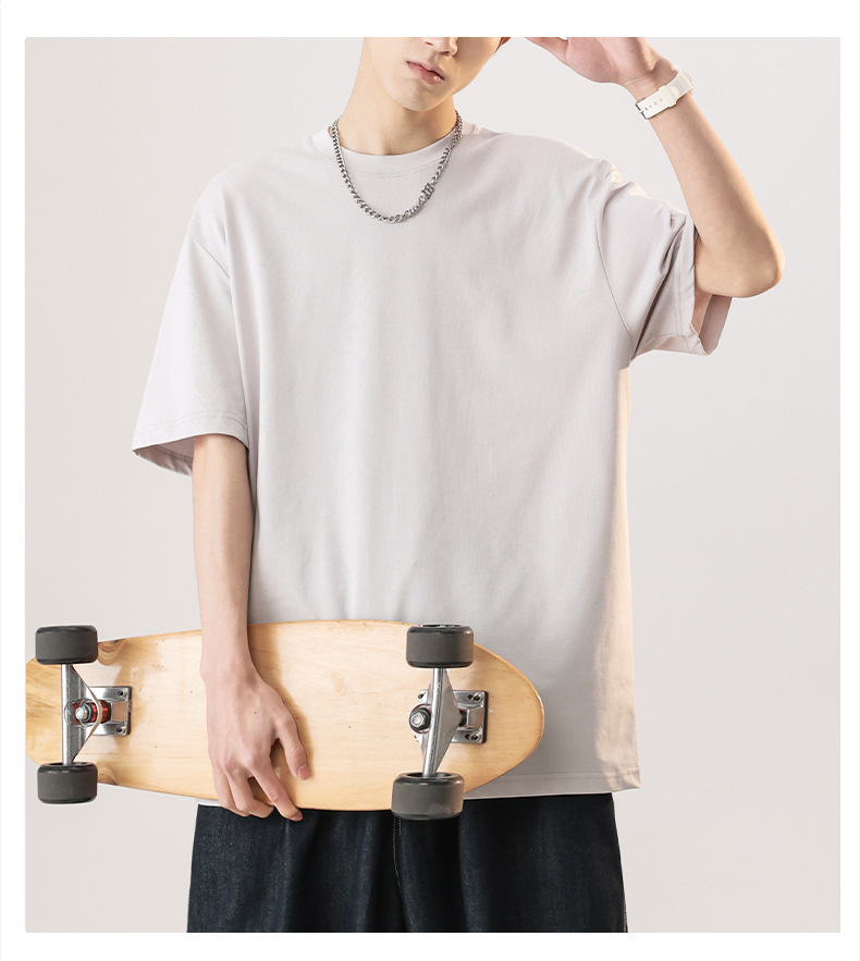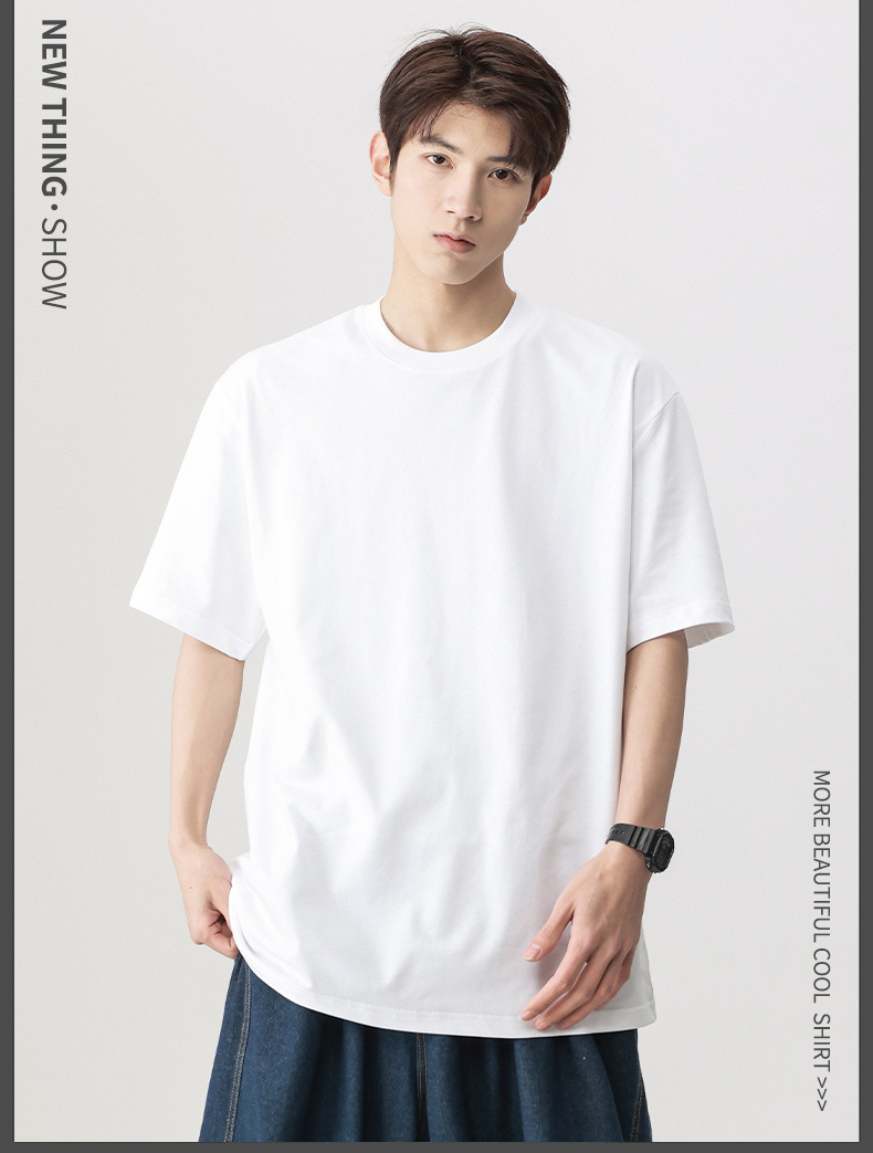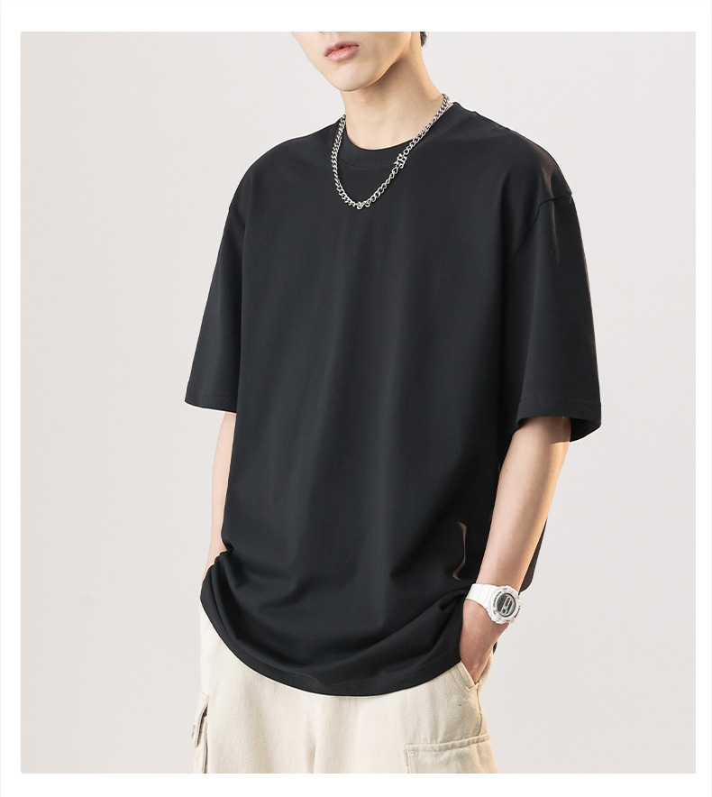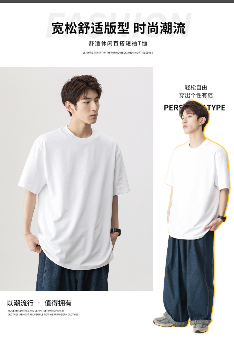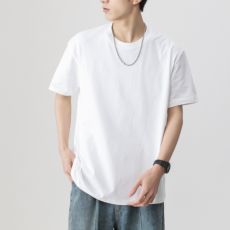 도매 반팔 티셔츠 남성 여름 얇은 느슨한 솔리드 컬러 캐주얼 탑 2025 새로운 230g 순수 코튼 바닥 셔츠스토어 가기