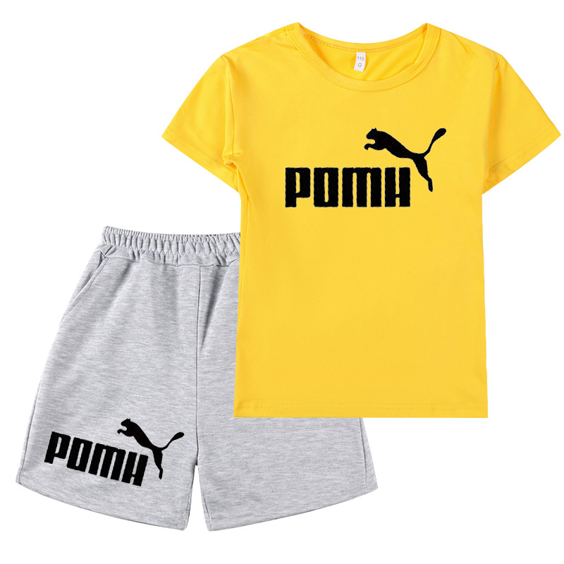 국경 간 아마존 대외 무역 2024 여름 새 스타일 인쇄 캐주얼 아동복 소년 소녀 반팔 티셔츠 + 반바지스토어 가기