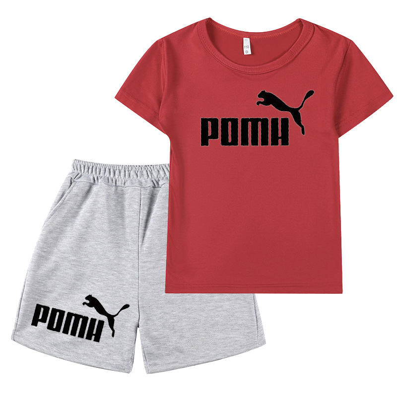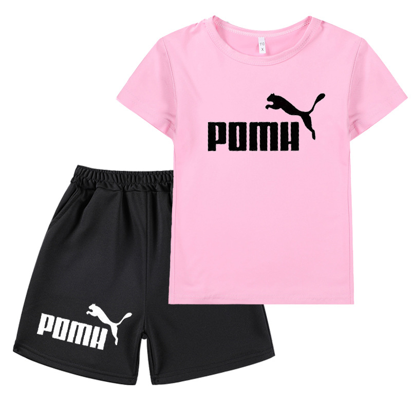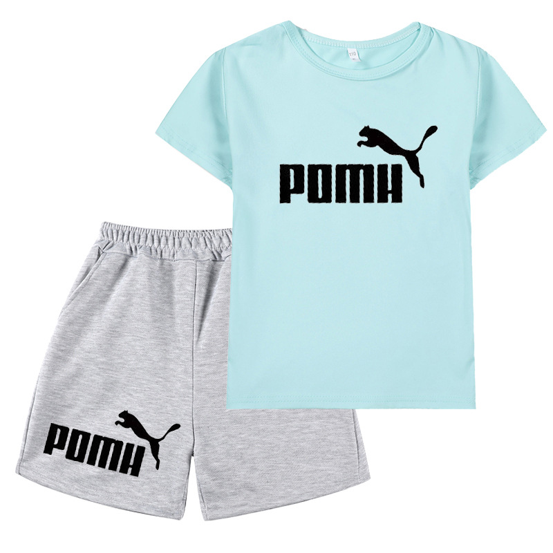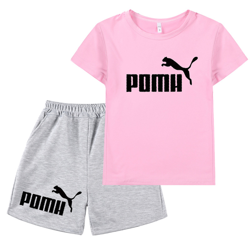 국경 간 아마존 대외 무역 2024 여름 새 스타일 인쇄 캐주얼 아동복 소년 소녀 반팔 티셔츠 + 반바지