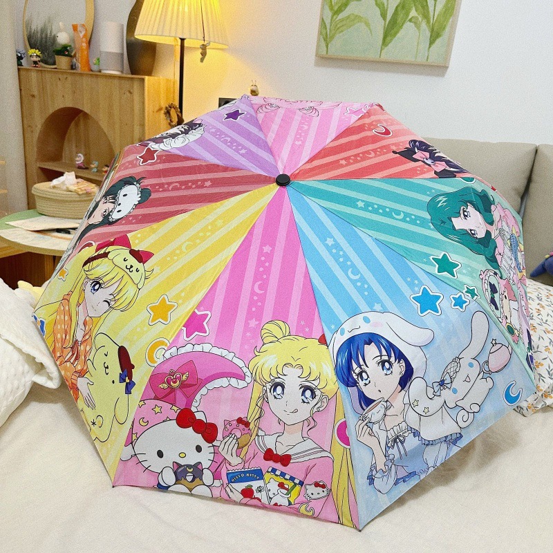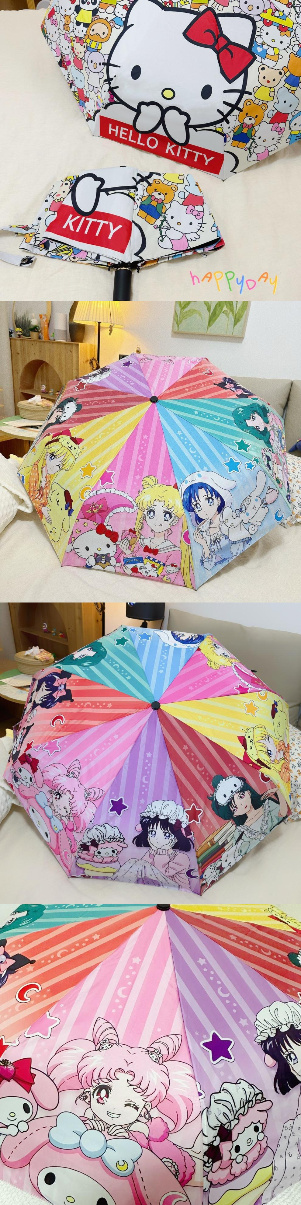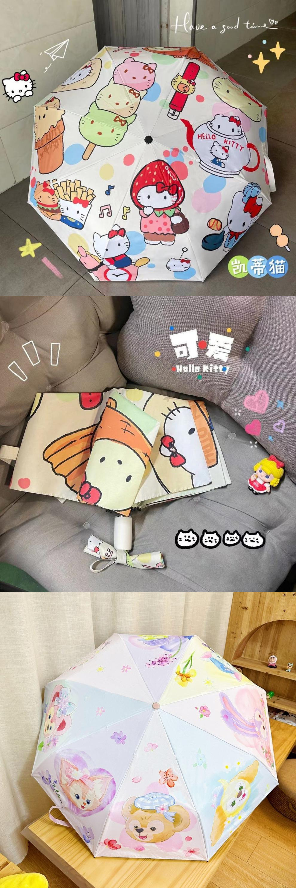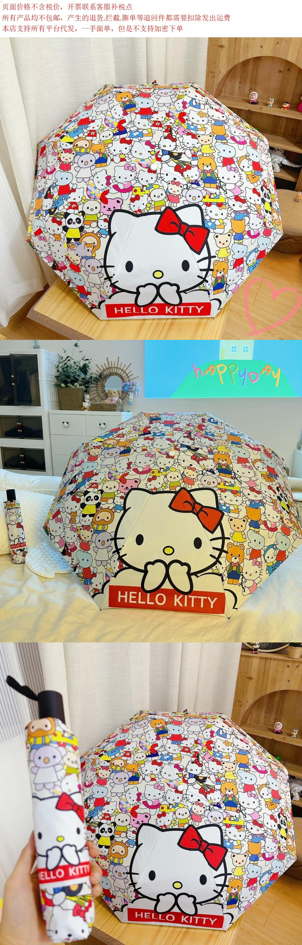 Hellokitty 완전 자동 우산 여성의 맑고 비오는 이중 목적 고급 검은 선 스크린 태양 우산 귀여운 헬로 키티스토어 가기