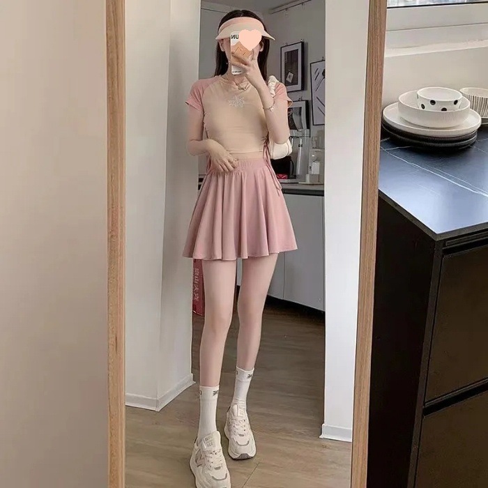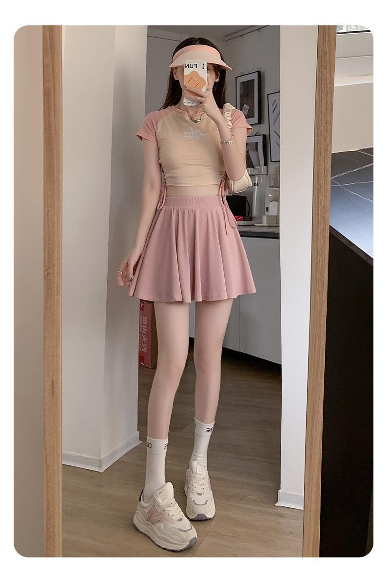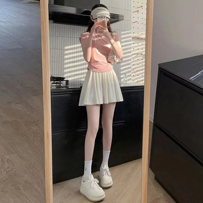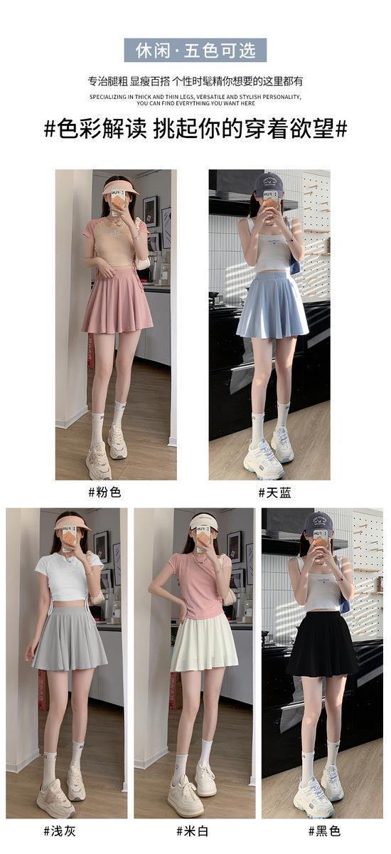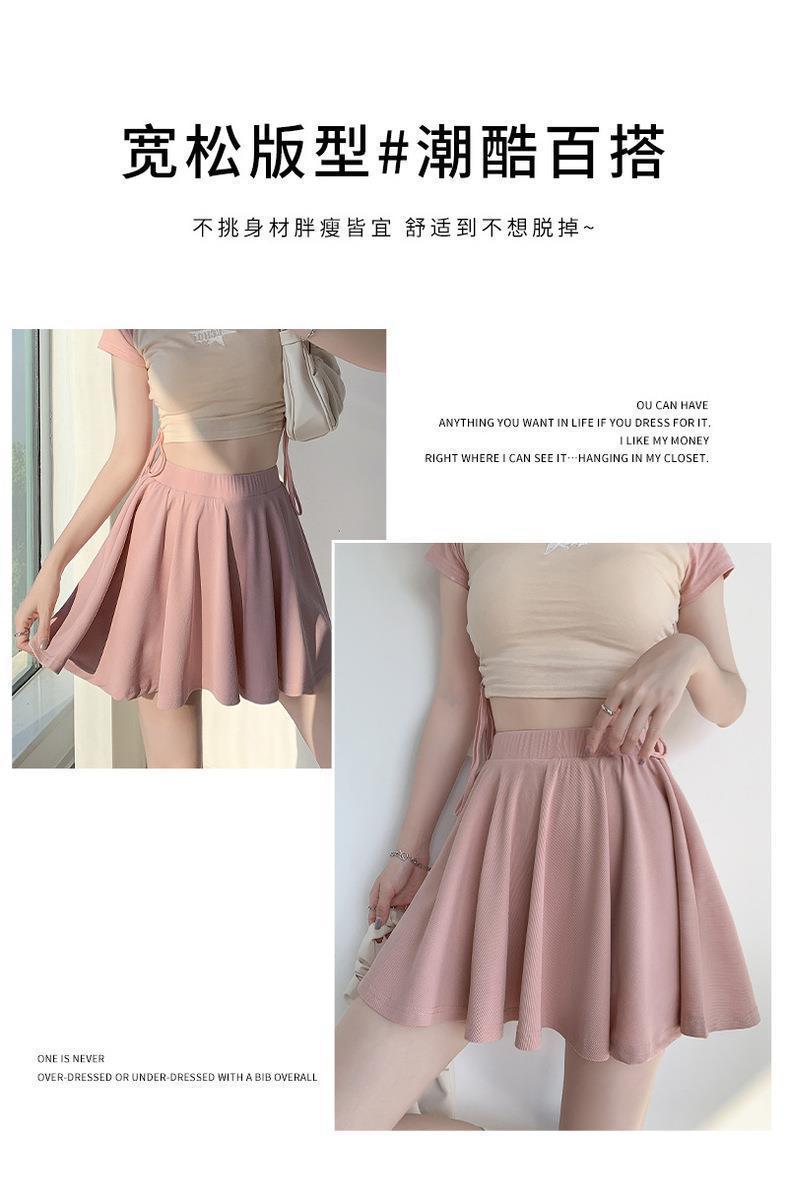 여성용 크로스보더 핑크 플리츠 스커트 여름 신작 팬츠 스커트 하이웨이스트 슬림 얇은 A라인 스커트스토어 가기