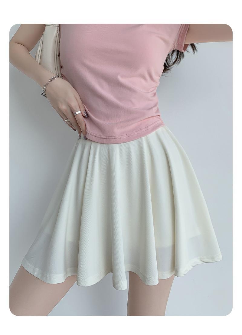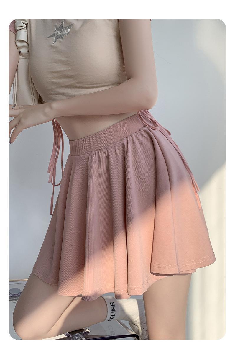 여성용 크로스보더 핑크 플리츠 스커트 여름 신작 팬츠 스커트 하이웨이스트 슬림 얇은 A라인 스커트