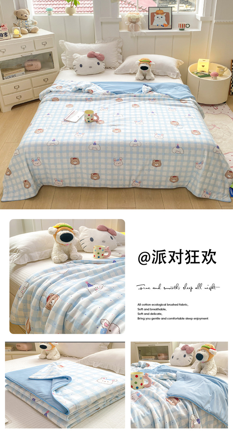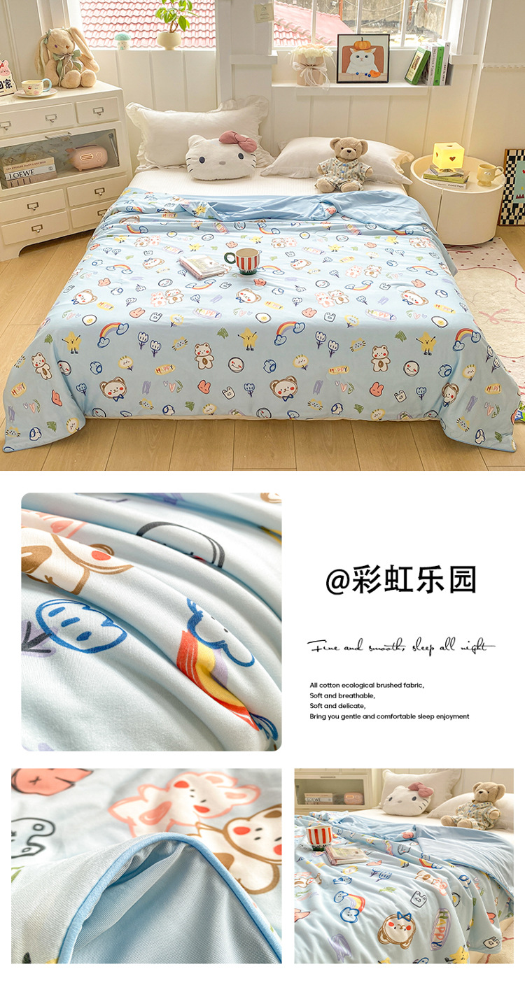 에어컨 이불 여름 시원한 이불 클래스 A 얼음 실크 여름 이불 양면 학생 기숙사 싱글 만화 기계 세탁 가능한 이불