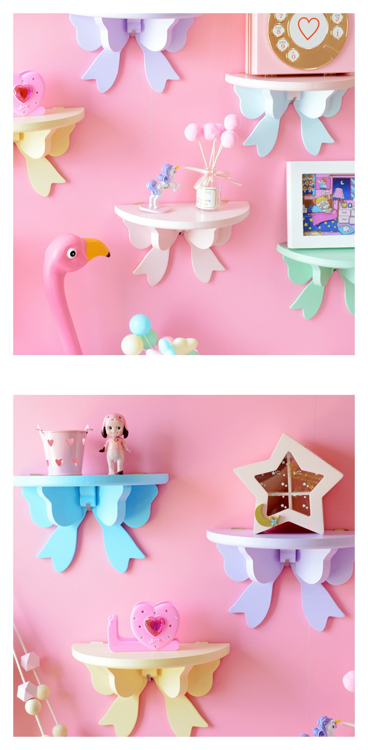걸리 하트 침실 장식 벽걸이형 선반 펀치 없음 핑크 일본식 부드러운 소녀 활 벽 수납장스토어 가기