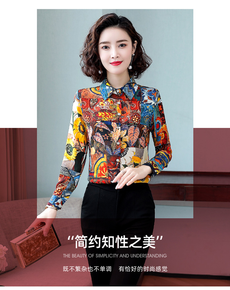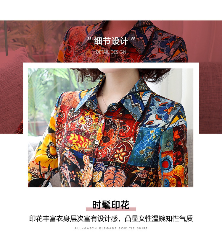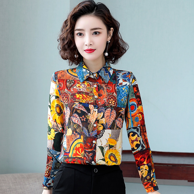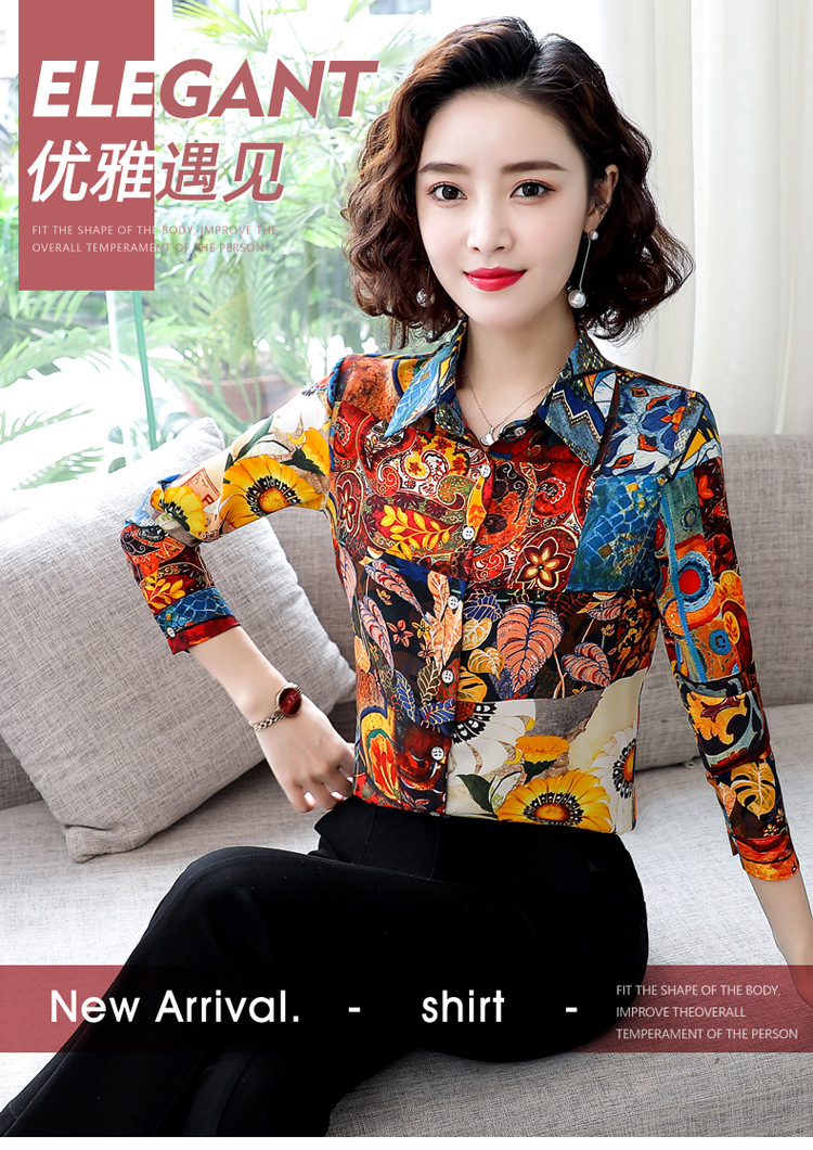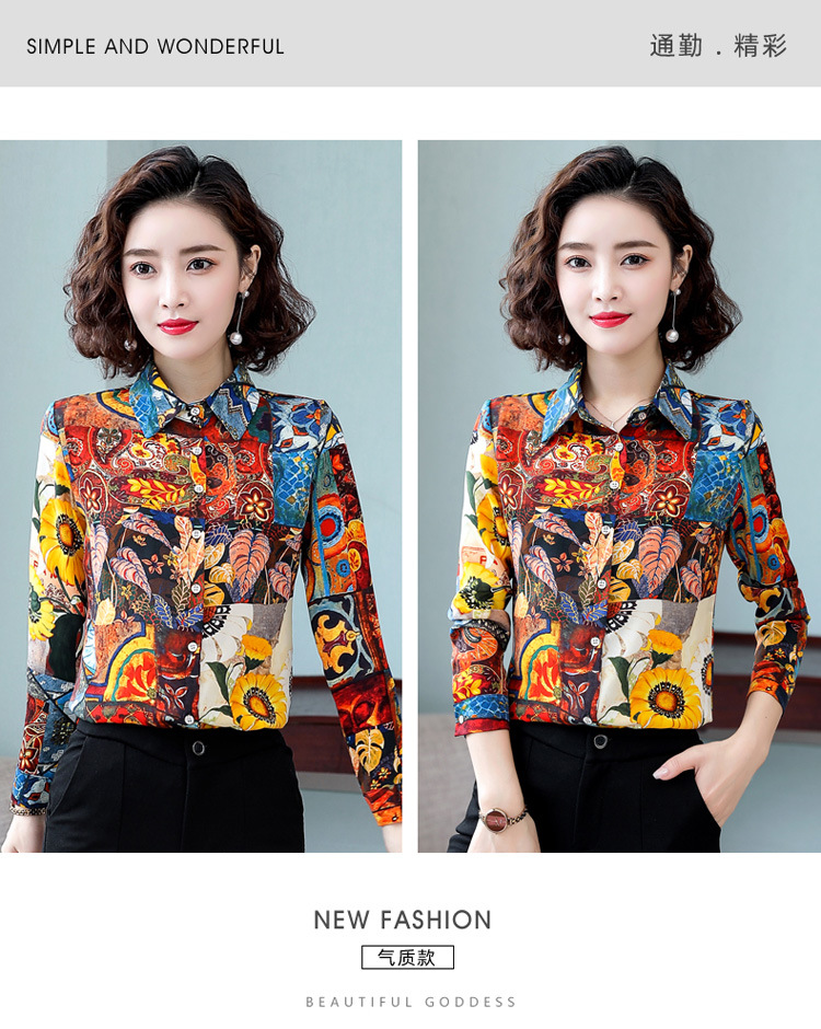여성을위한 쉬폰 주름 방지 패션 캐주얼 프린트 라펠 셔츠 봄, 가을 새로운 스타일 외국 스타일 연령 감소 싱글 브레스트 카디건 셔츠스토어 가기