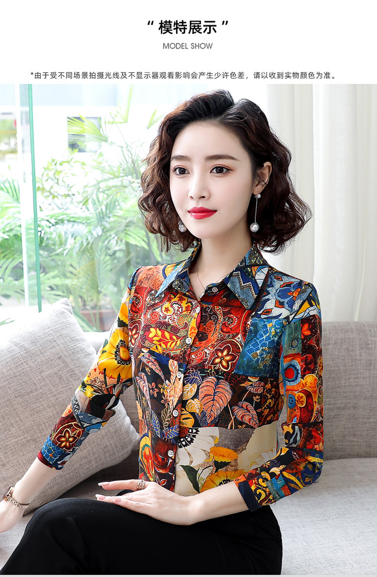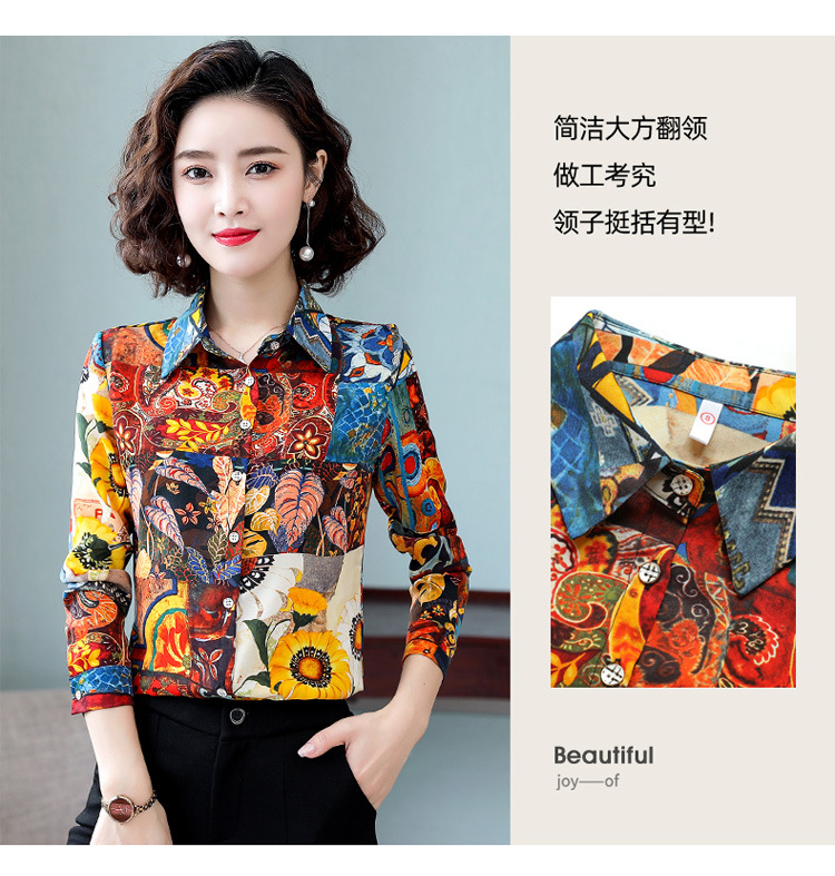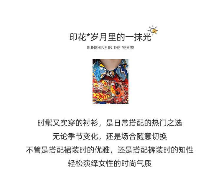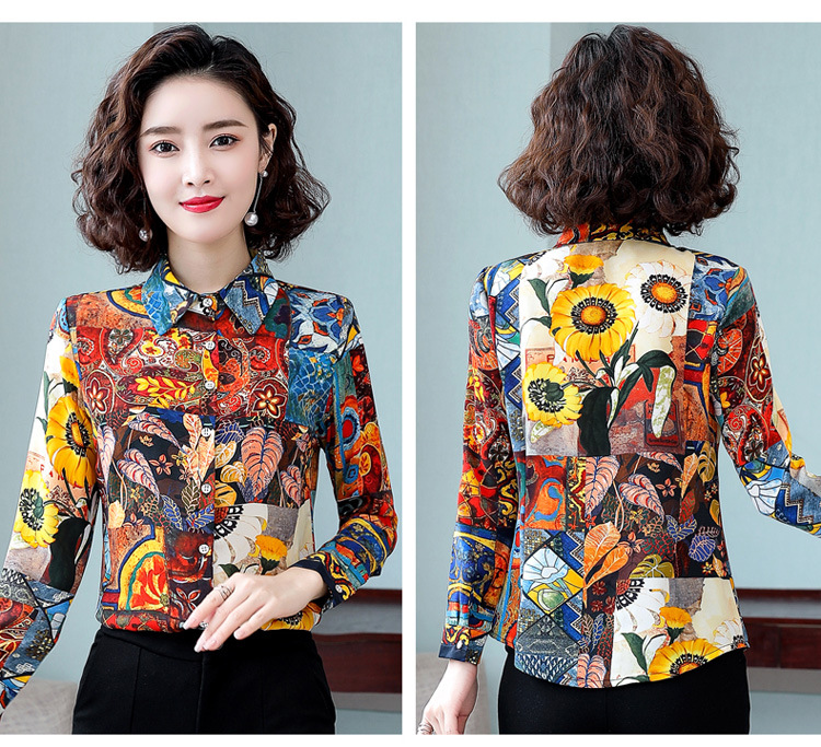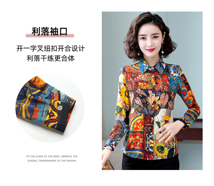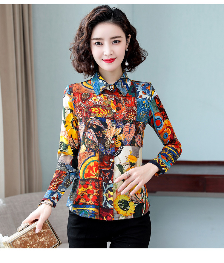 여성을위한 쉬폰 주름 방지 패션 캐주얼 프린트 라펠 셔츠 봄, 가을 새로운 스타일 외국 스타일 연령 감소 싱글 브레스트 카디건 셔츠스토어 가기