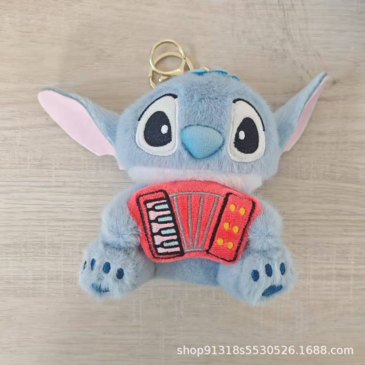 만화 스티치 키체인 크로스보더 가방 장식품 인형 기계 선물 가방 장식 인형 플러시 키체인