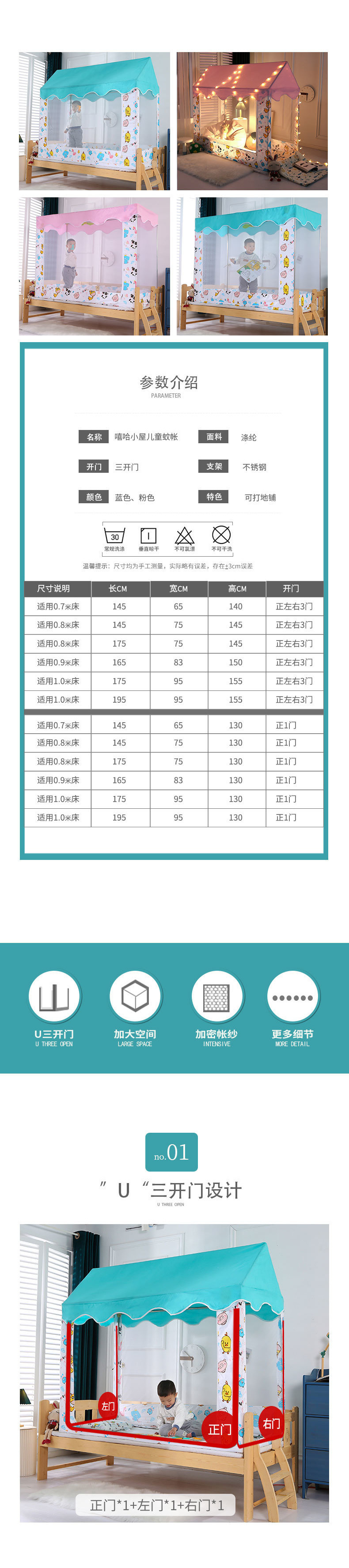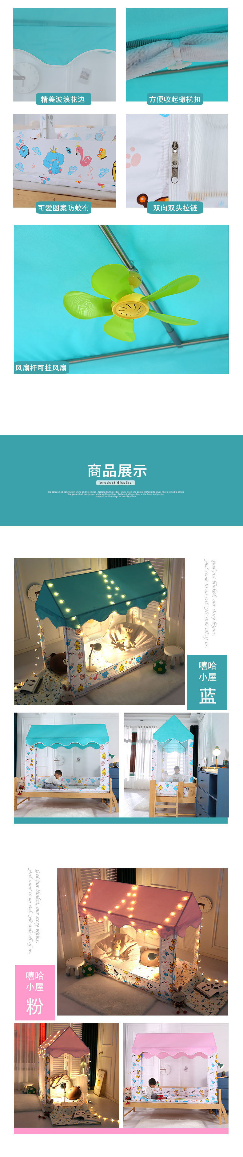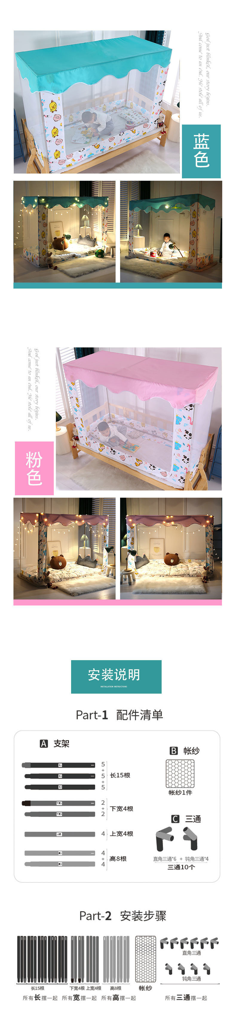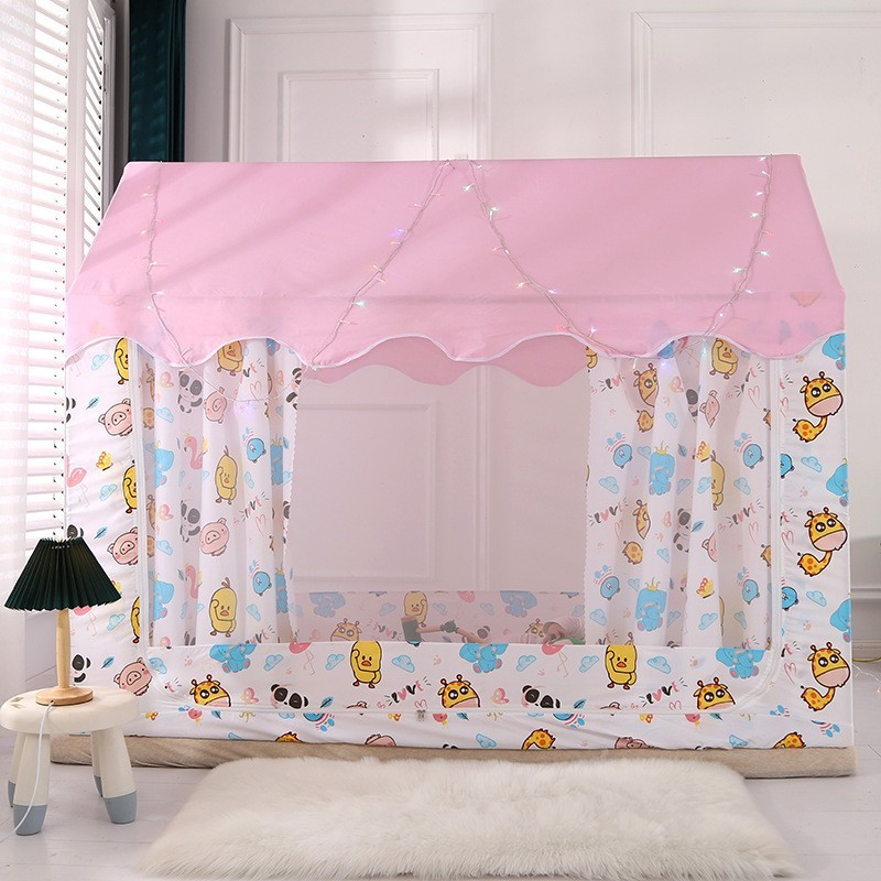 어린이 침대 빛 차단 모기장 침대 커튼 공주 게임 텐트 새로운 스타일 소녀 소년 베이비 핑크 블루 만화 접합스토어 가기