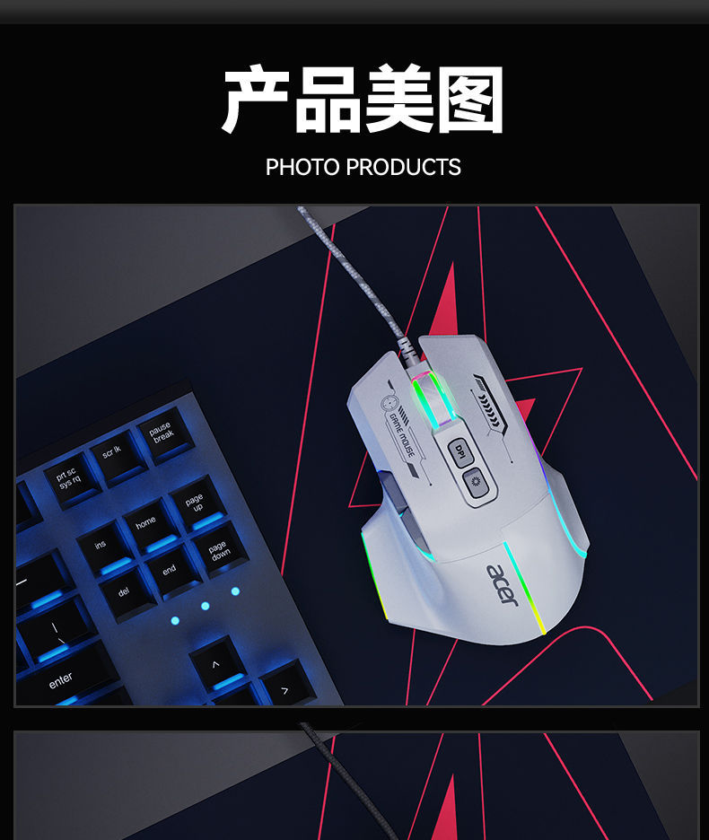 Acer OMW950 e-스포츠 게임용 마우스 유선 베이스 RGB 매크로 프로그래밍 치킨 오피스 컴퓨터 노트북스토어 가기