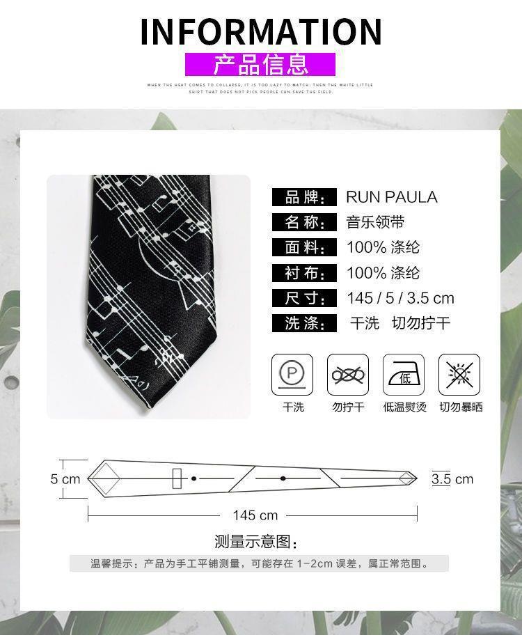 한국 패션 피아노 인 타이 5CM 남성과 여성 학생 노트 맞춤형 멋진 디스코 힙합 음악 좁은 넥타이