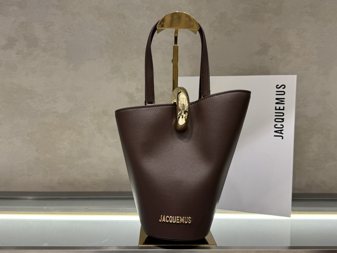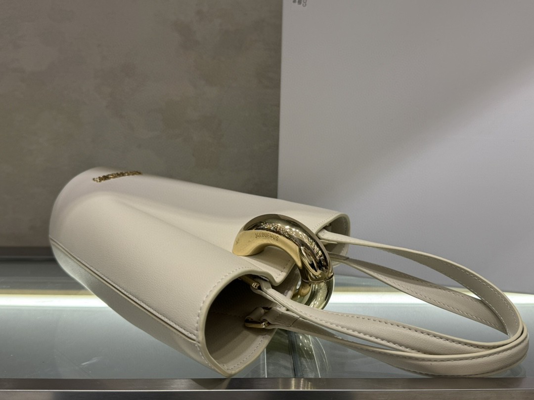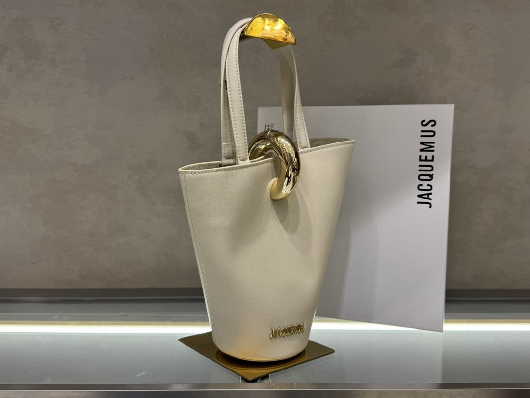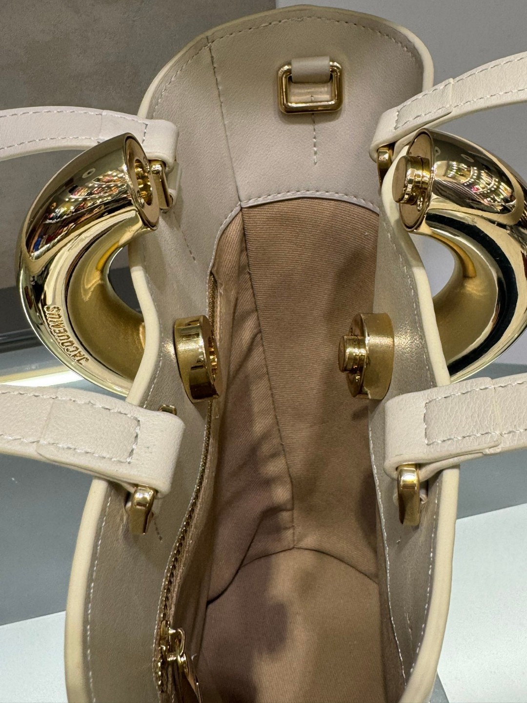 2025 새로운 프랑스 틈새 Jacquemus 맞춤형 비대칭 야채 바구니 정품 가죽 골드 버클 핸드백