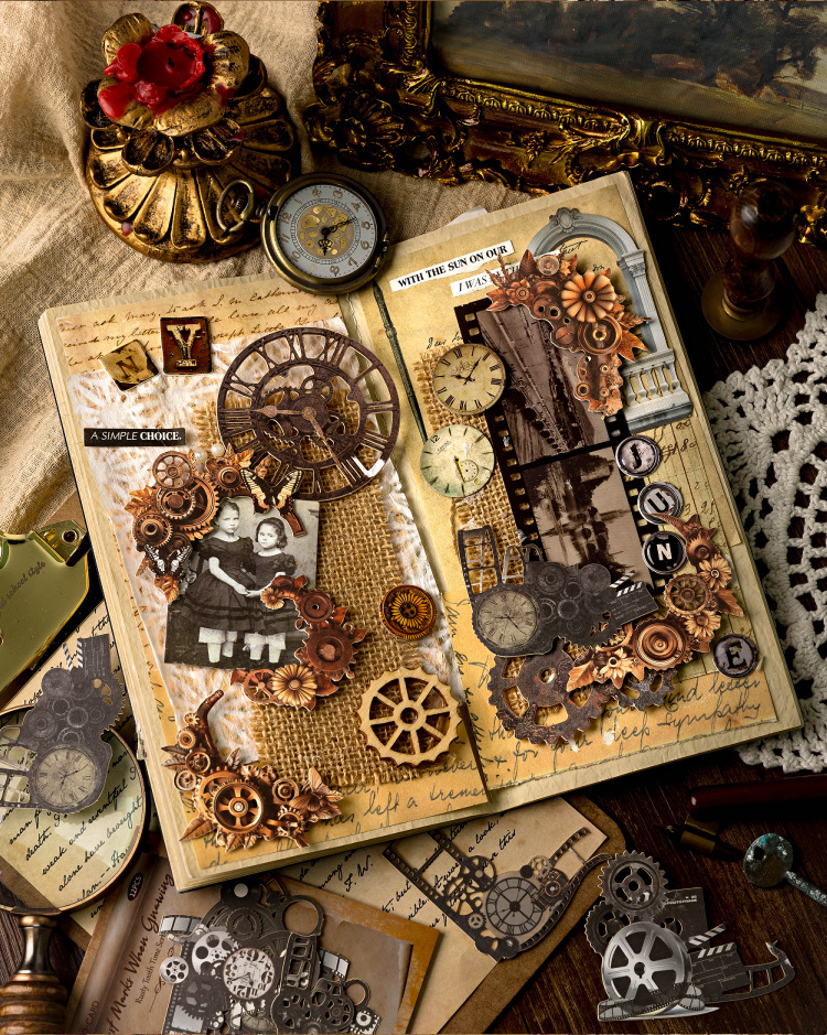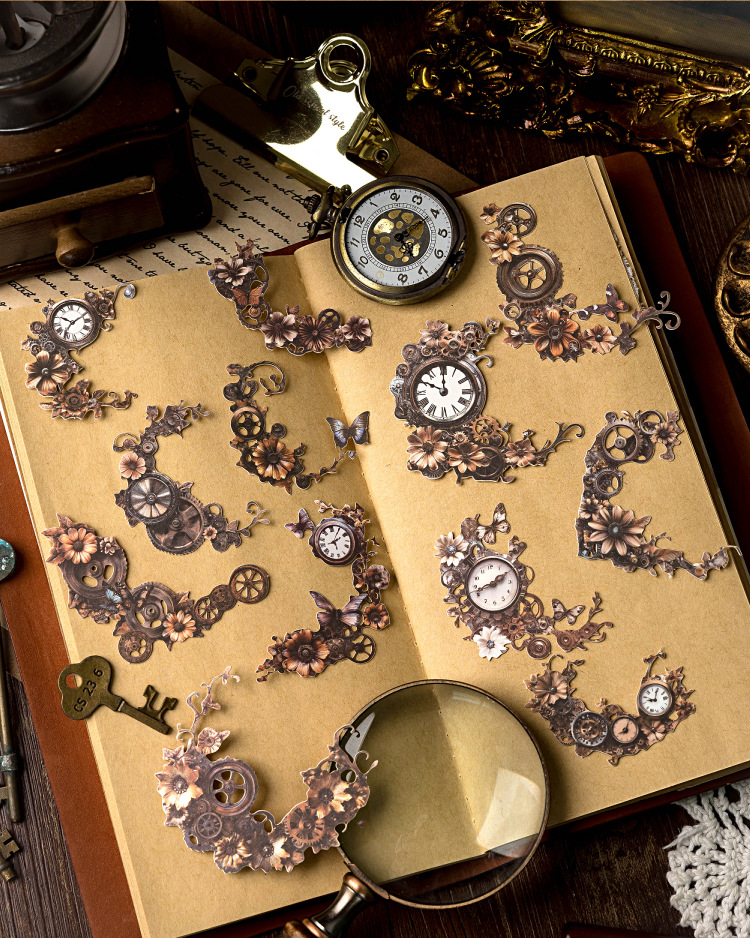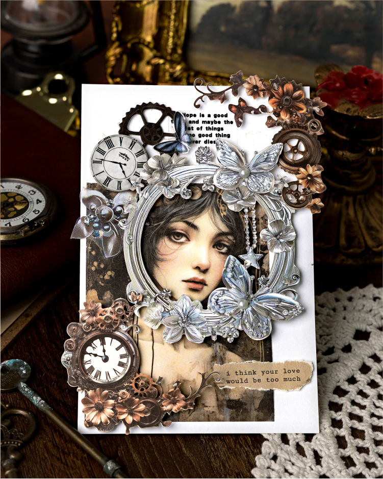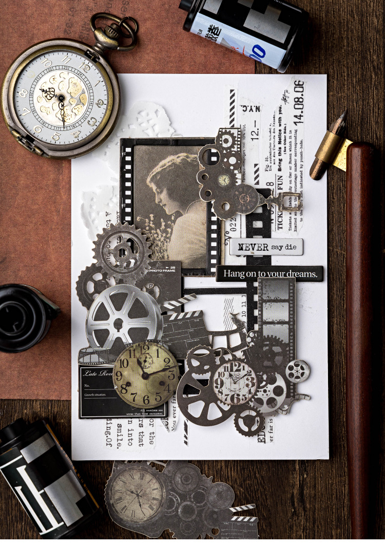 모 잉크 흰색 크래프트 종이 중공 하드 카드 스티커-녹 치아 시간 시리즈 6 손 계정 DIY 장식 콜라주 소재스토어 가기