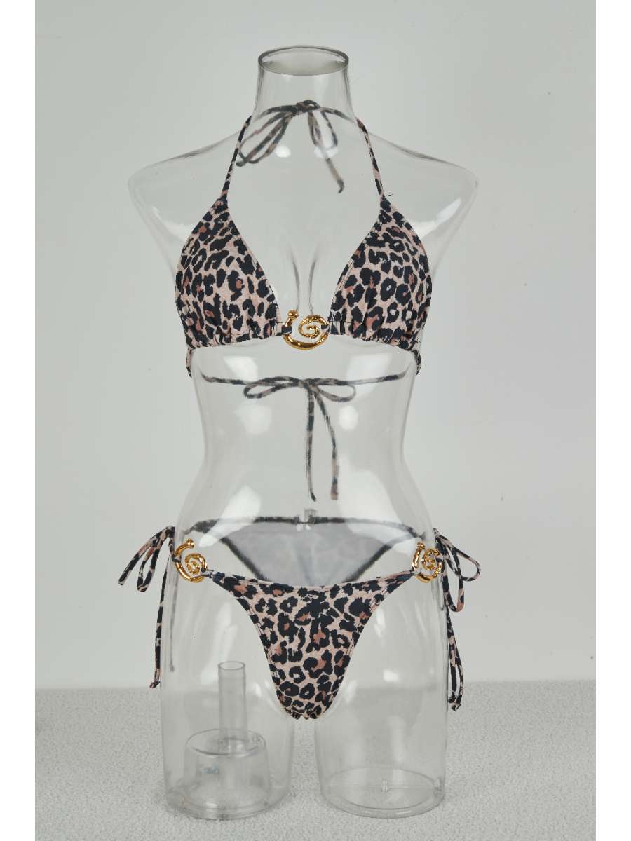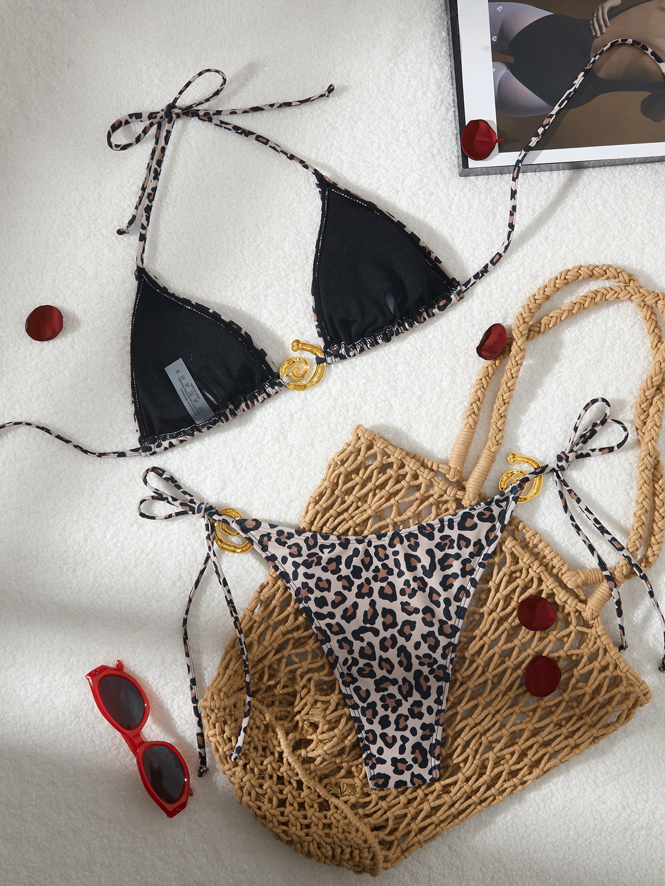 유럽과 미국의 새로운 여름 수영복, 여성스러운 레이스업 레오파드 프린트 비키니, 해변 휴가, 국경 간 무역, 여성 스포츠 스타일스토어 가기