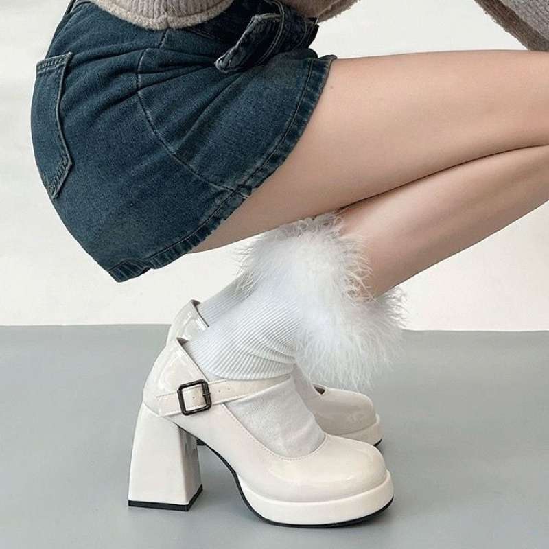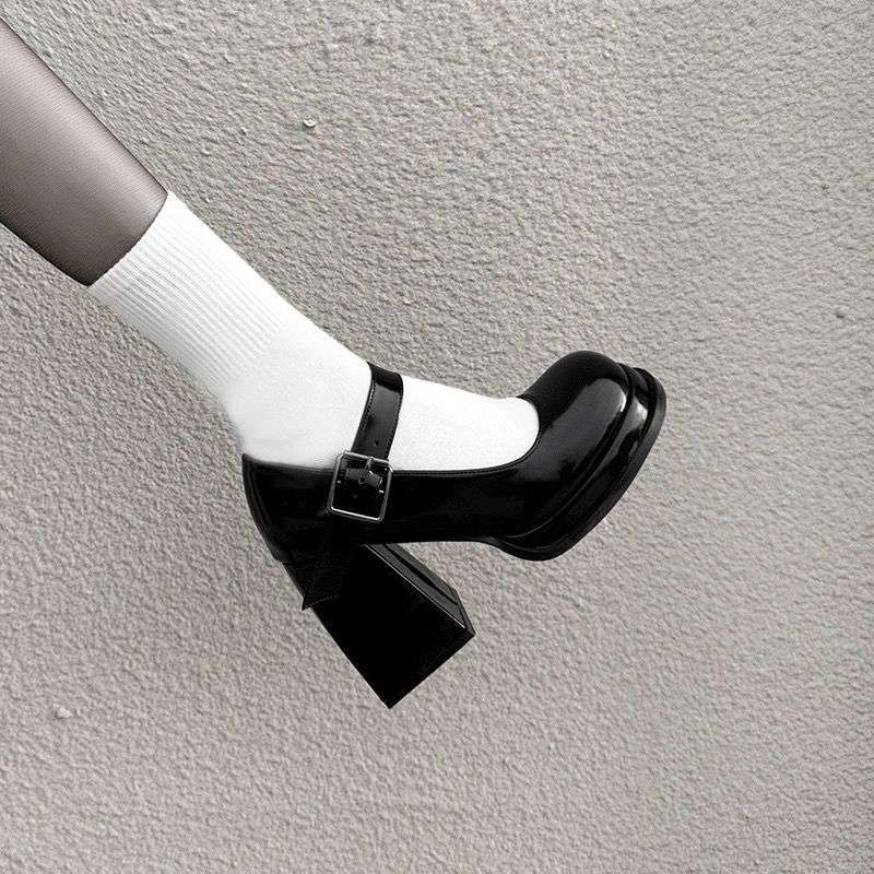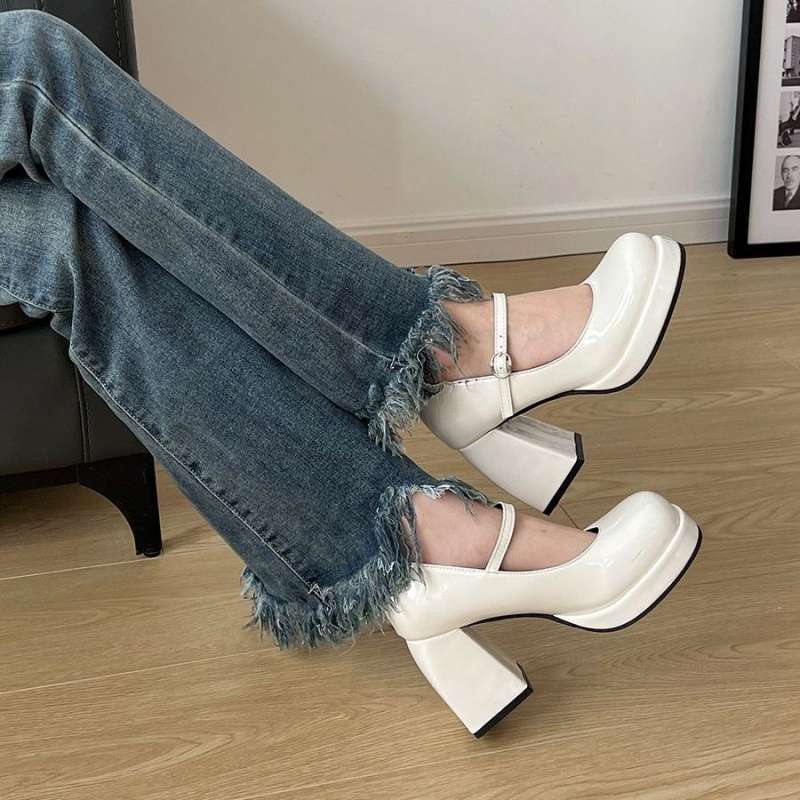 컷 남자 두꺼운 힐 메리 제인 신발 여자 라운드 2025 새로운 일본 핫 걸 Jk 유니폼 작은 가죽 신발 슈퍼 하이힐스토어 가기