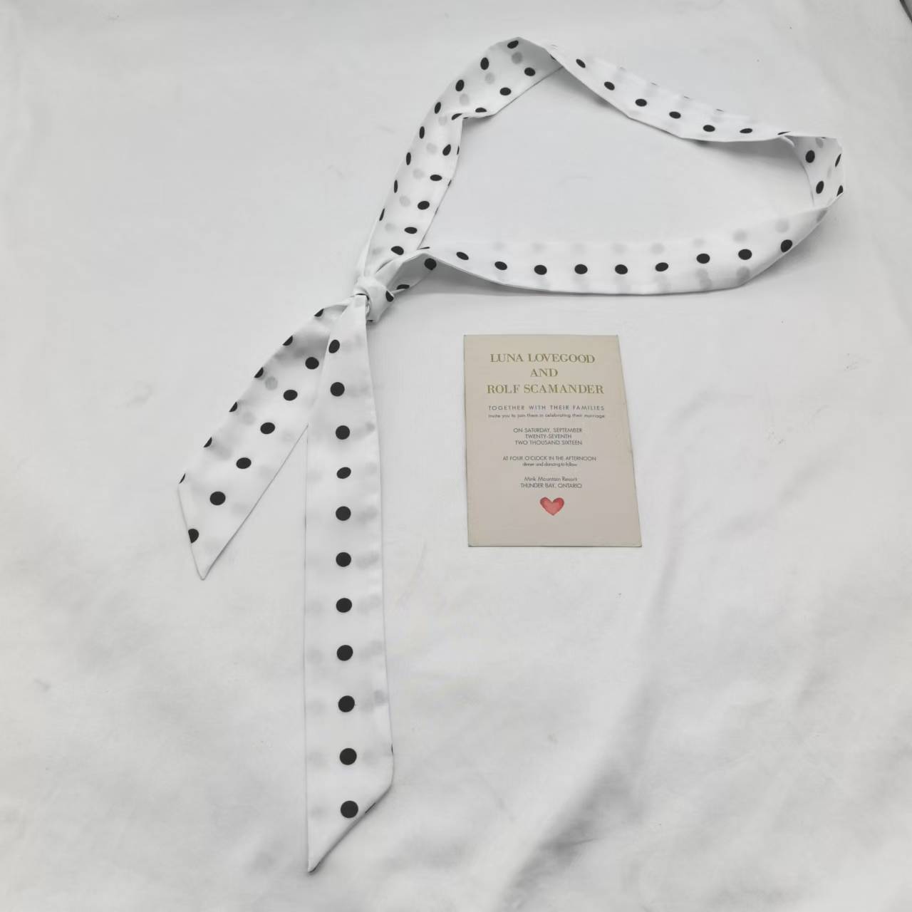 • 흰색 바탕에 검은색 물방울 무늬가 있는 리본