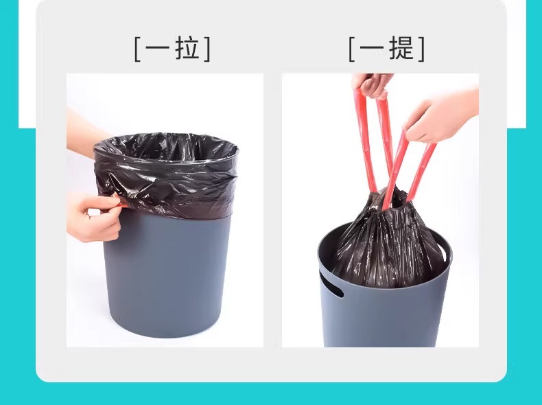 抽绳式垃圾袋家用厨房钢袋加厚手提式办公室商用收口塑料袋实惠装