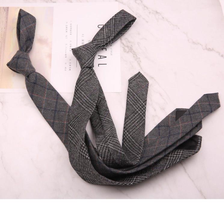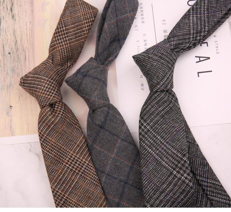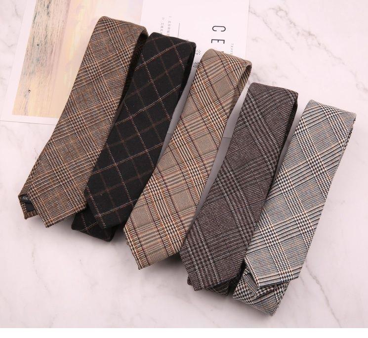 남성용 모조 울 넥타이 6CM 좁은 복고풍 영국 유럽 및 미국 스타일 캐주얼 비즈니스 손으로 그린 격자 무늬 패턴