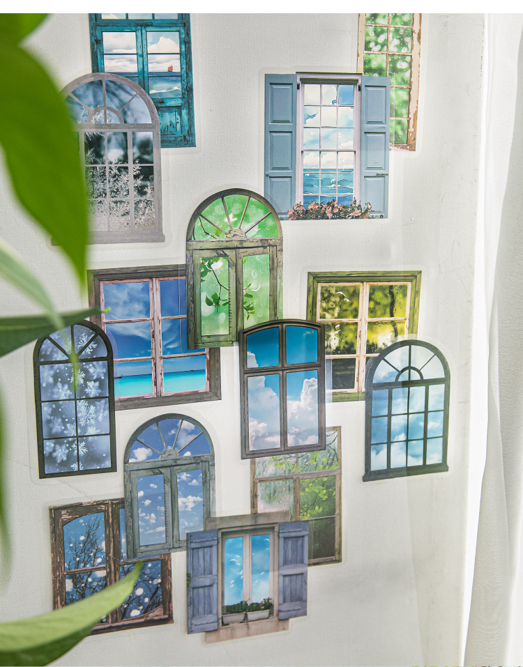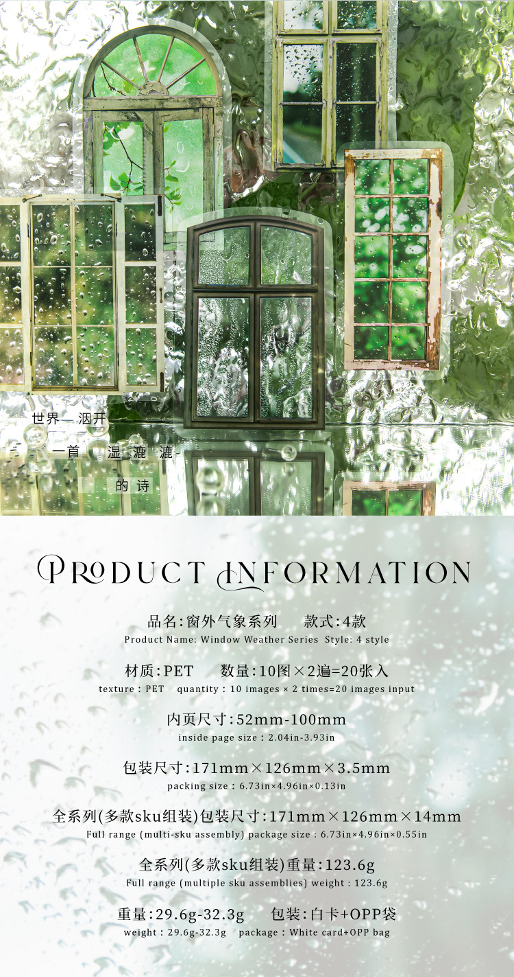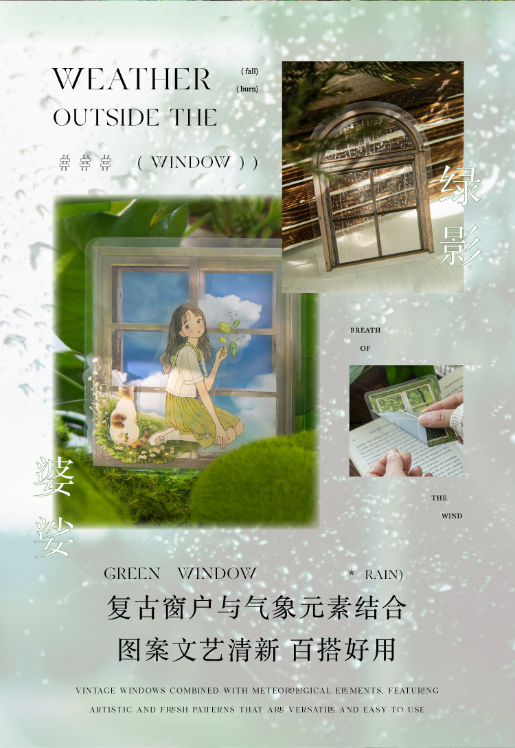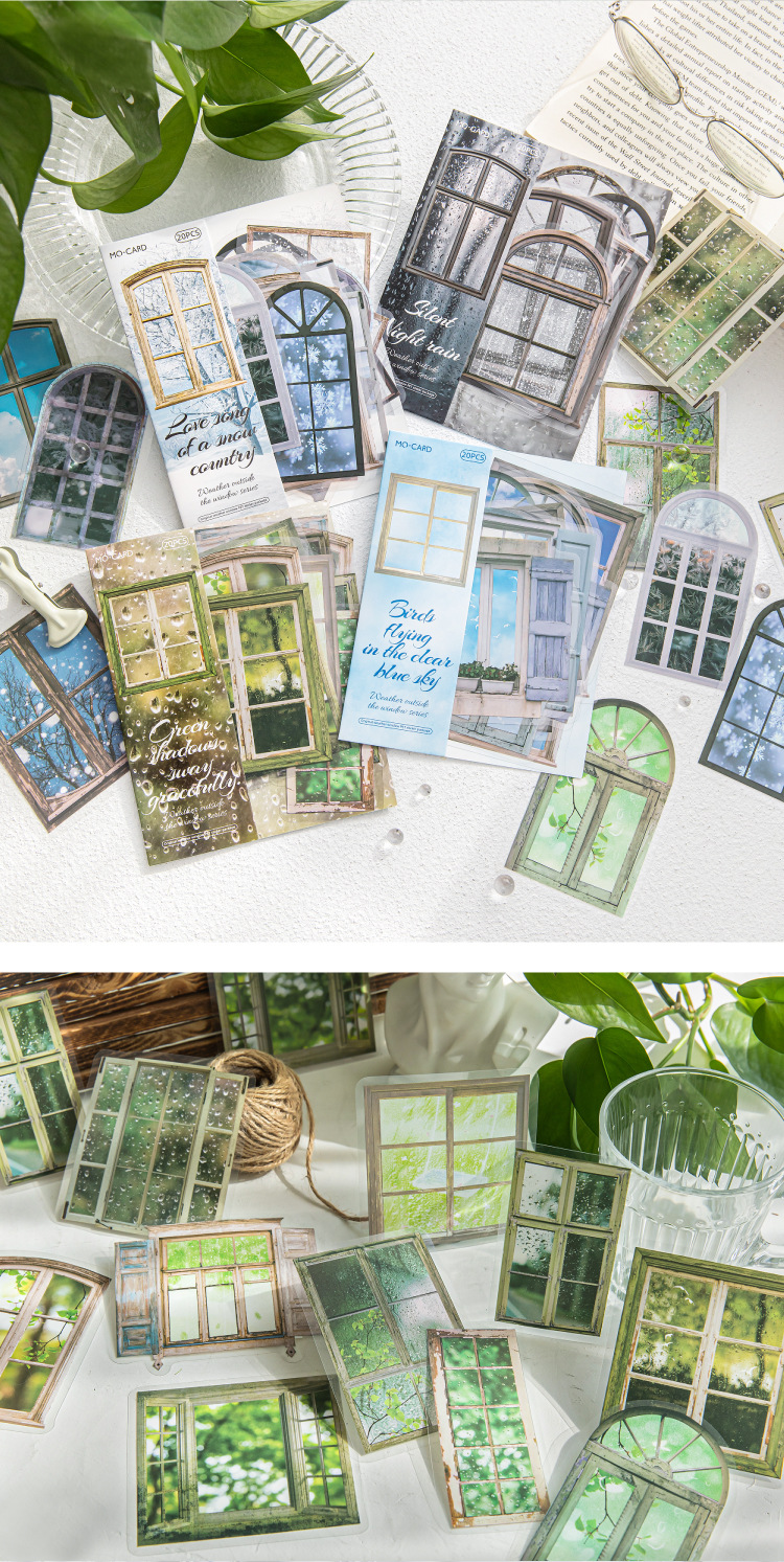 모 모 애완 동물 흰색 잉크 스티커 팩-창 외부 날씨 시리즈 손 계정 장식 콜라주 장식 재료 스티커 4