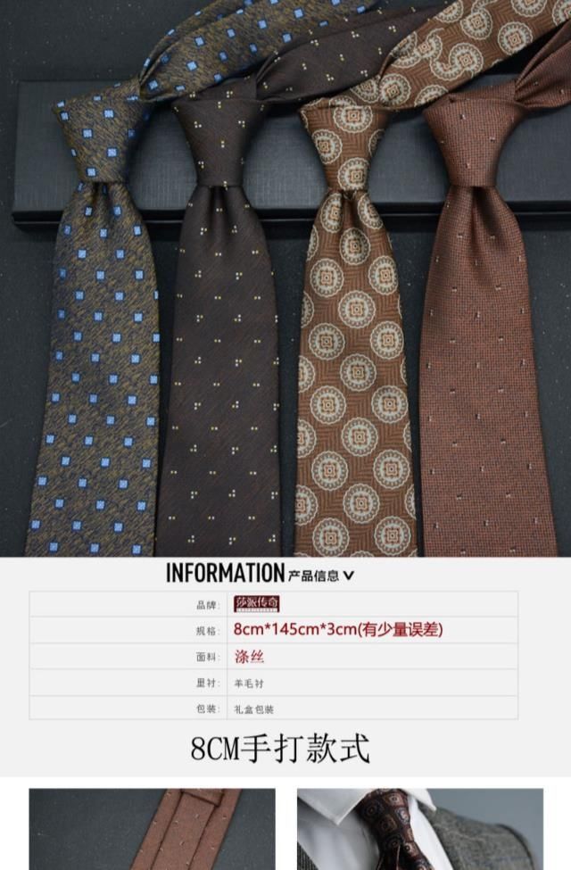 넥타이 남자 8cm 정장 비즈니스 한국어 버전 작업 복고풍 패턴 커피 브라운 웨딩 신랑 정장 선물 상자스토어 가기