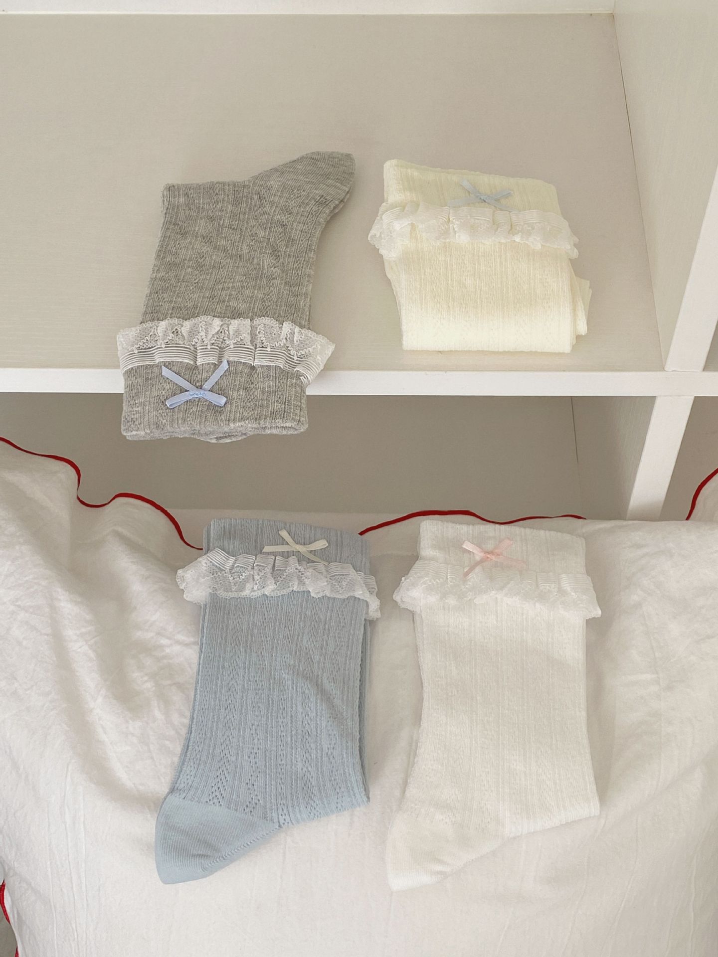 봄 여름 여성용 뼈없는 양말 얇은 발레 스타일 양말 레이스 보우 대학 스타일 일본식 종아리 양말