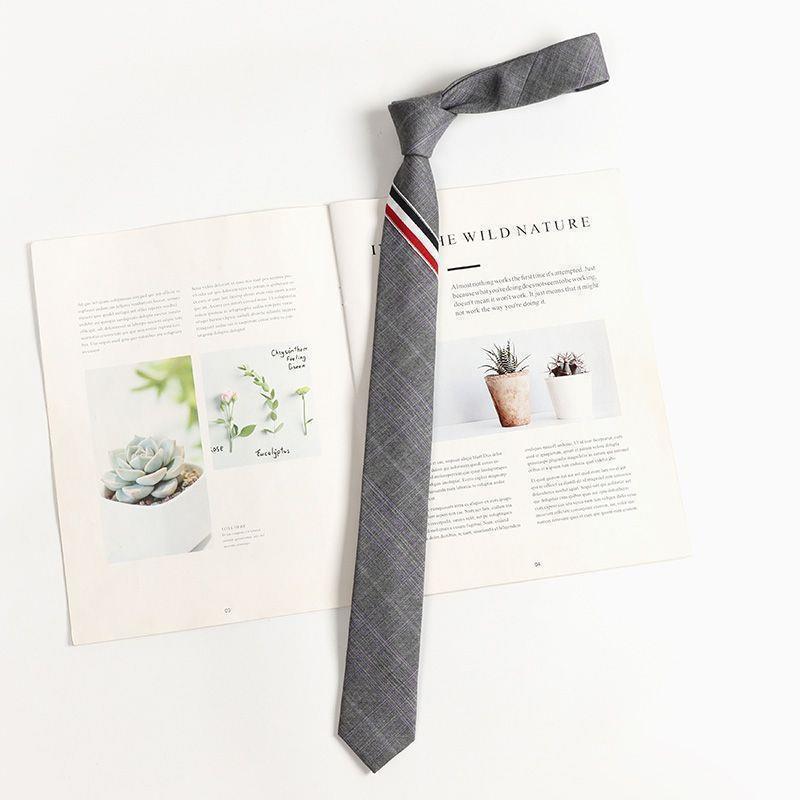 Cyndi Wang과 같은 스타일의 tb 회색 넥타이 게으른 사람들을 위한 무료 JK 대학 스타일 스트라이프 작은 넥타이 여성 커플 스타일 손으로 묶은 남성스토어 가기