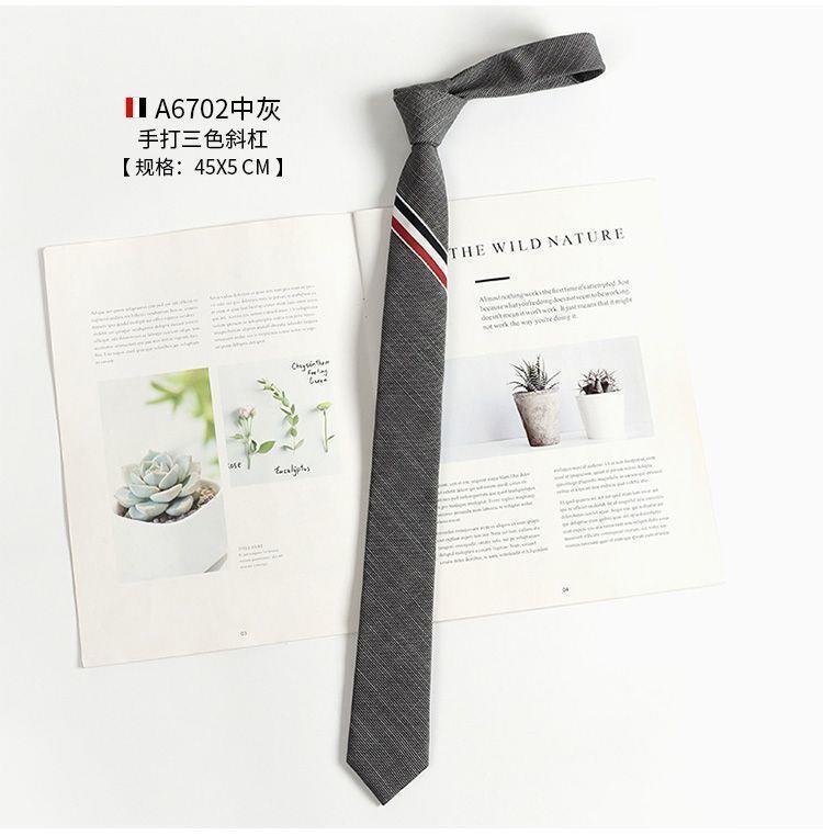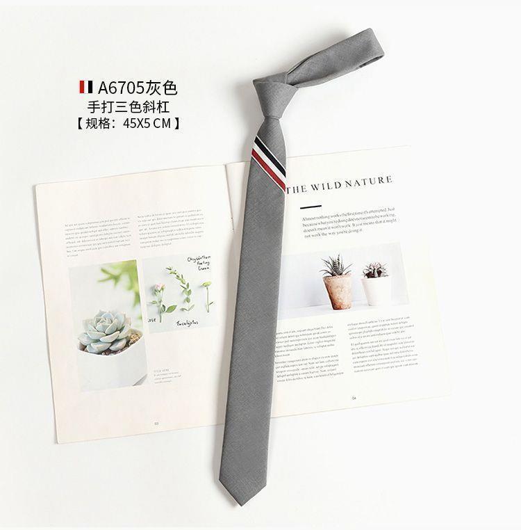 Cyndi Wang과 같은 스타일의 tb 회색 넥타이 게으른 사람들을 위한 무료 JK 대학 스타일 스트라이프 작은 넥타이 여성 커플 스타일 손으로 묶은 남성