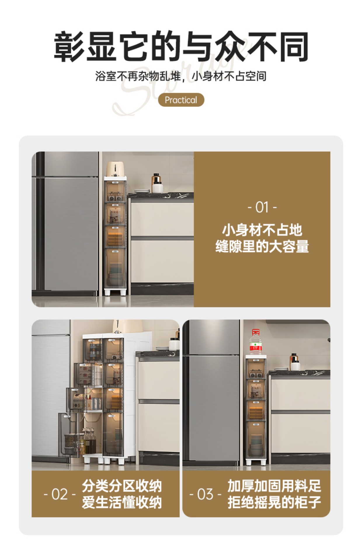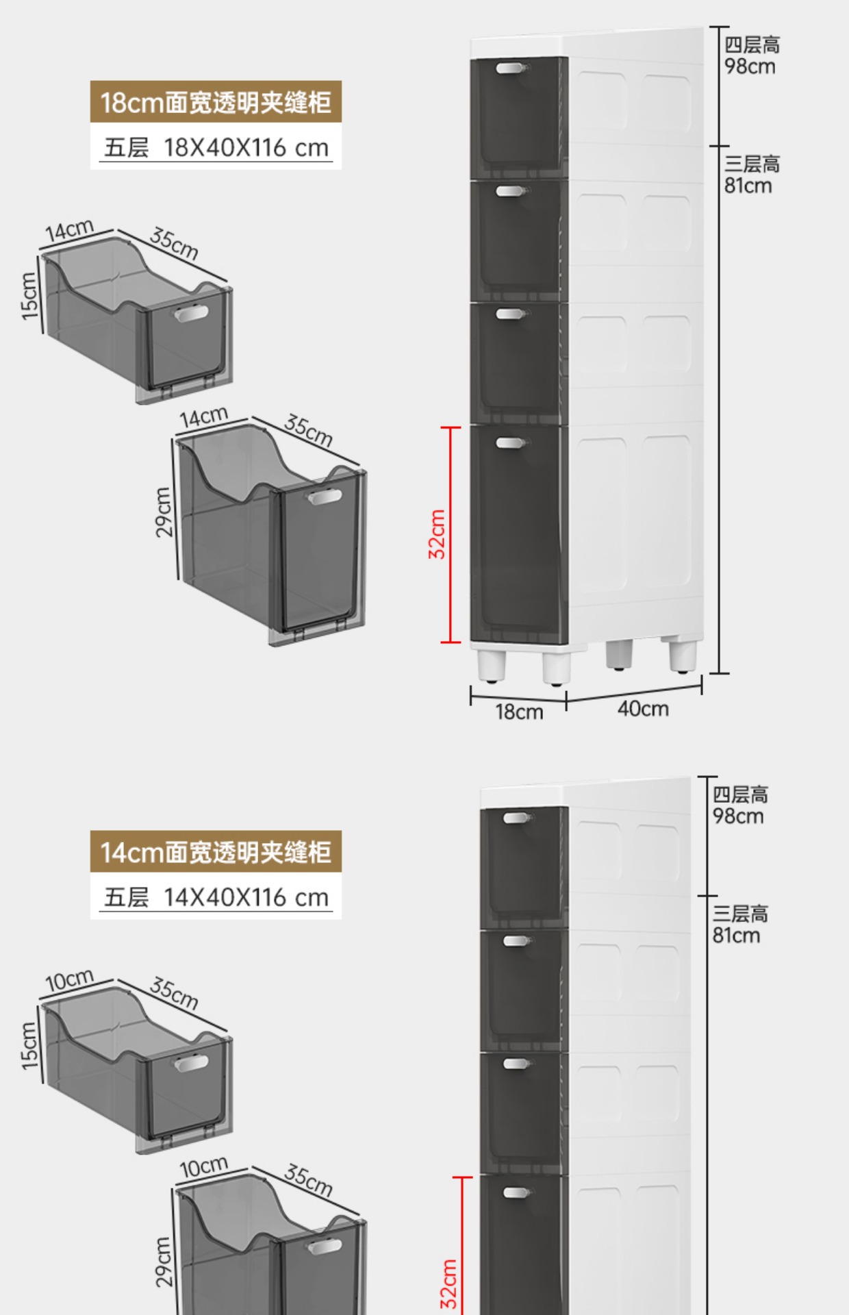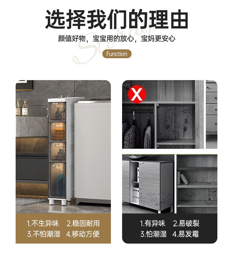 투명한 갭 저장 캐비닛 가정용 서랍 유형 욕실 갭 저장 캐비닛 주방 측면 캐비닛 슈퍼 좁은 저장 랙