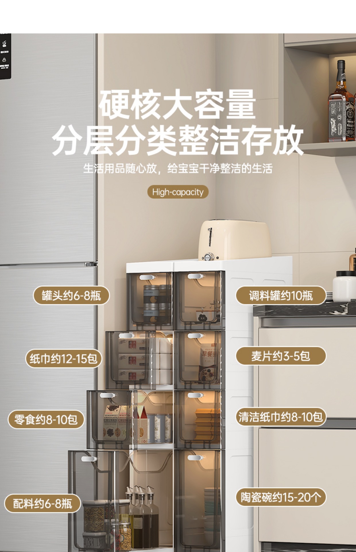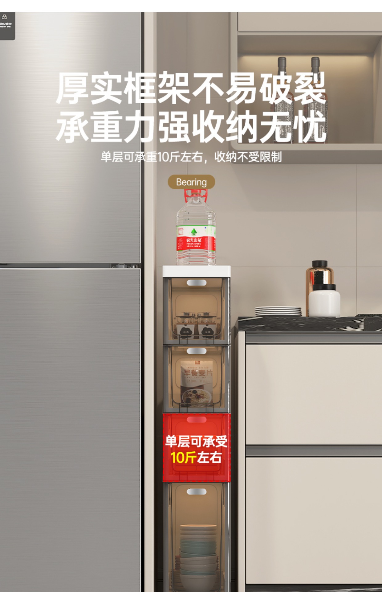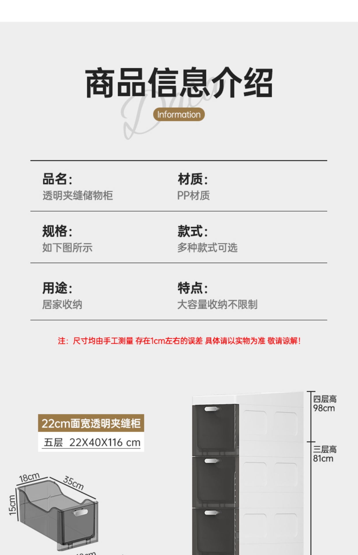 투명한 갭 저장 캐비닛 가정용 서랍 유형 욕실 갭 저장 캐비닛 주방 측면 캐비닛 슈퍼 좁은 저장 랙