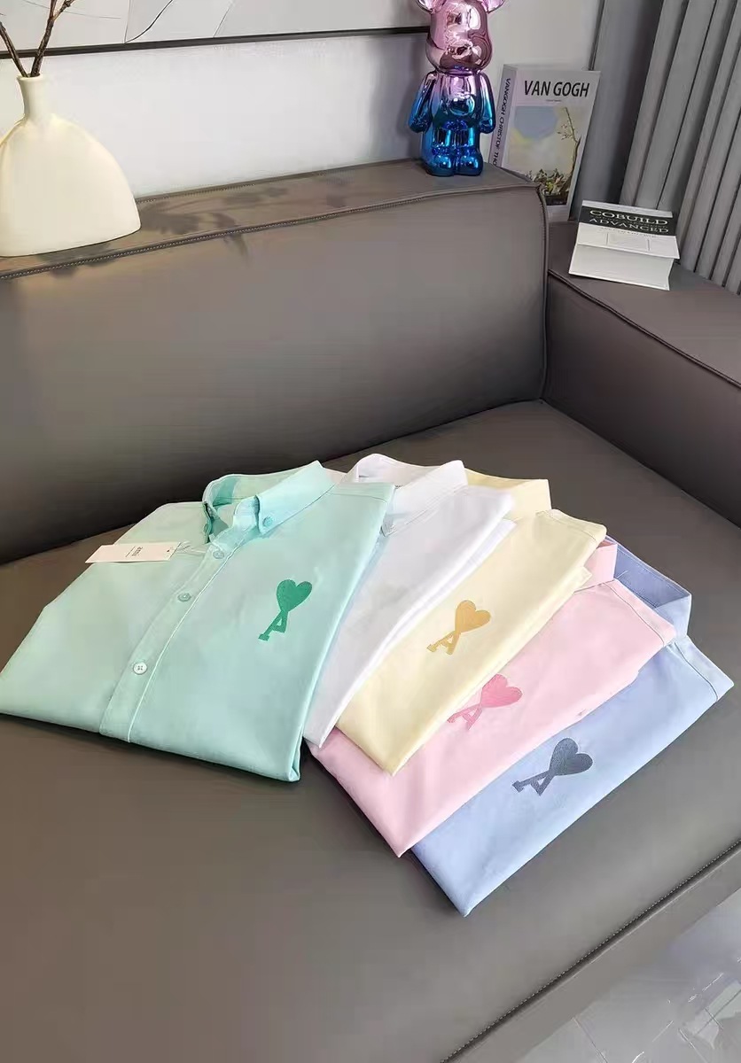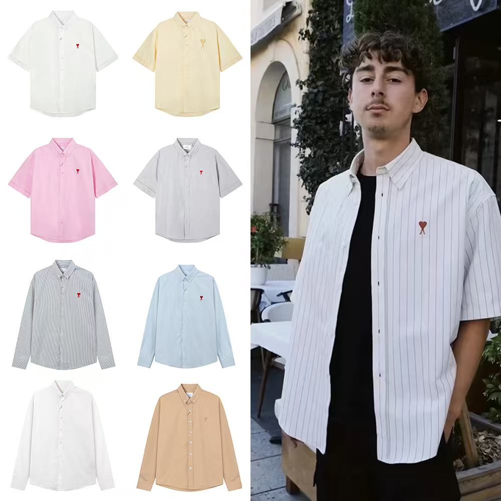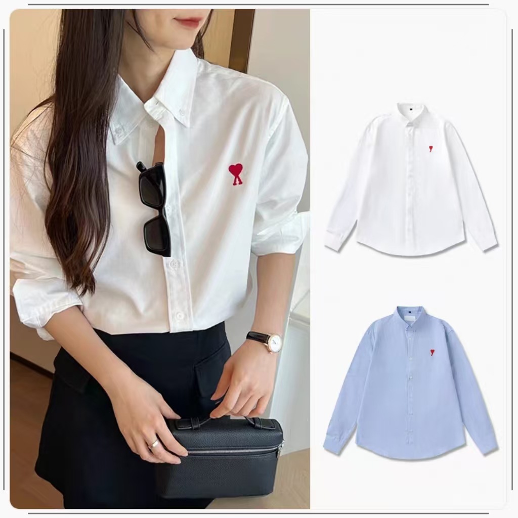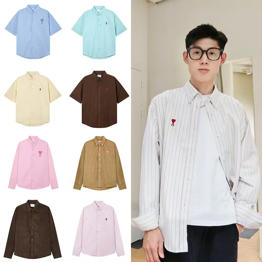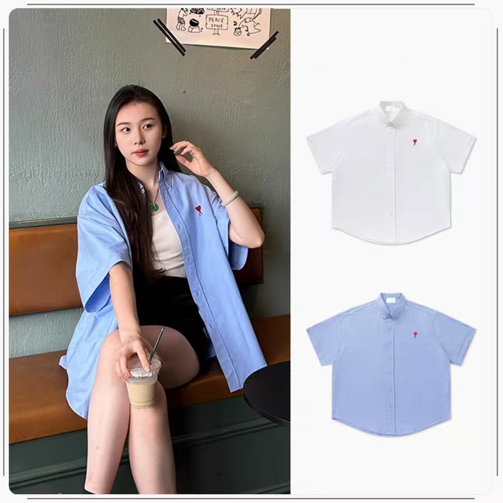 A* 작은 사랑 자수 셔츠 여름 새 스타일 남성과 여성 커플 솔리드 컬러 셔츠 캐주얼 루즈 코튼 탑 25