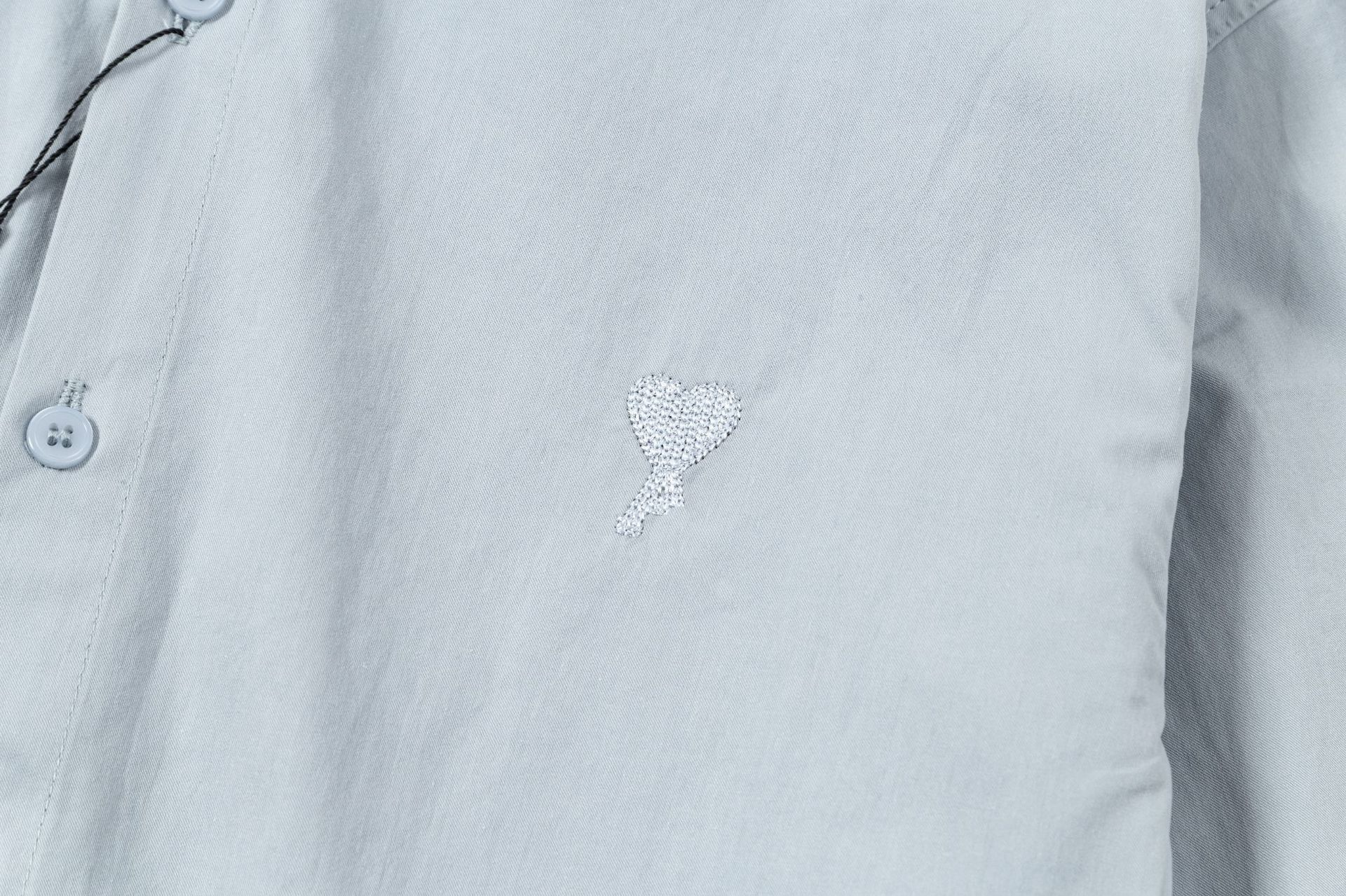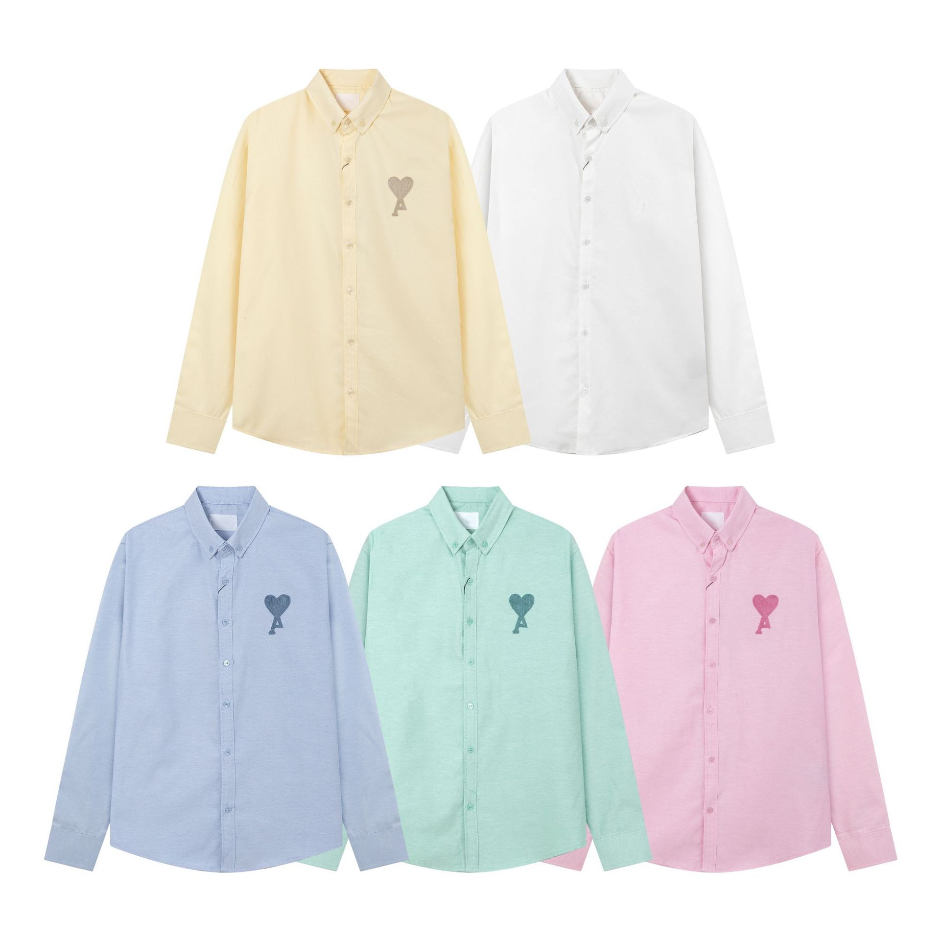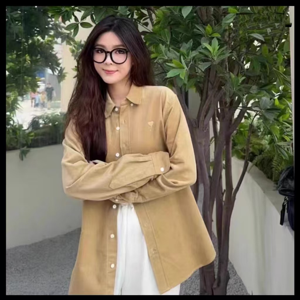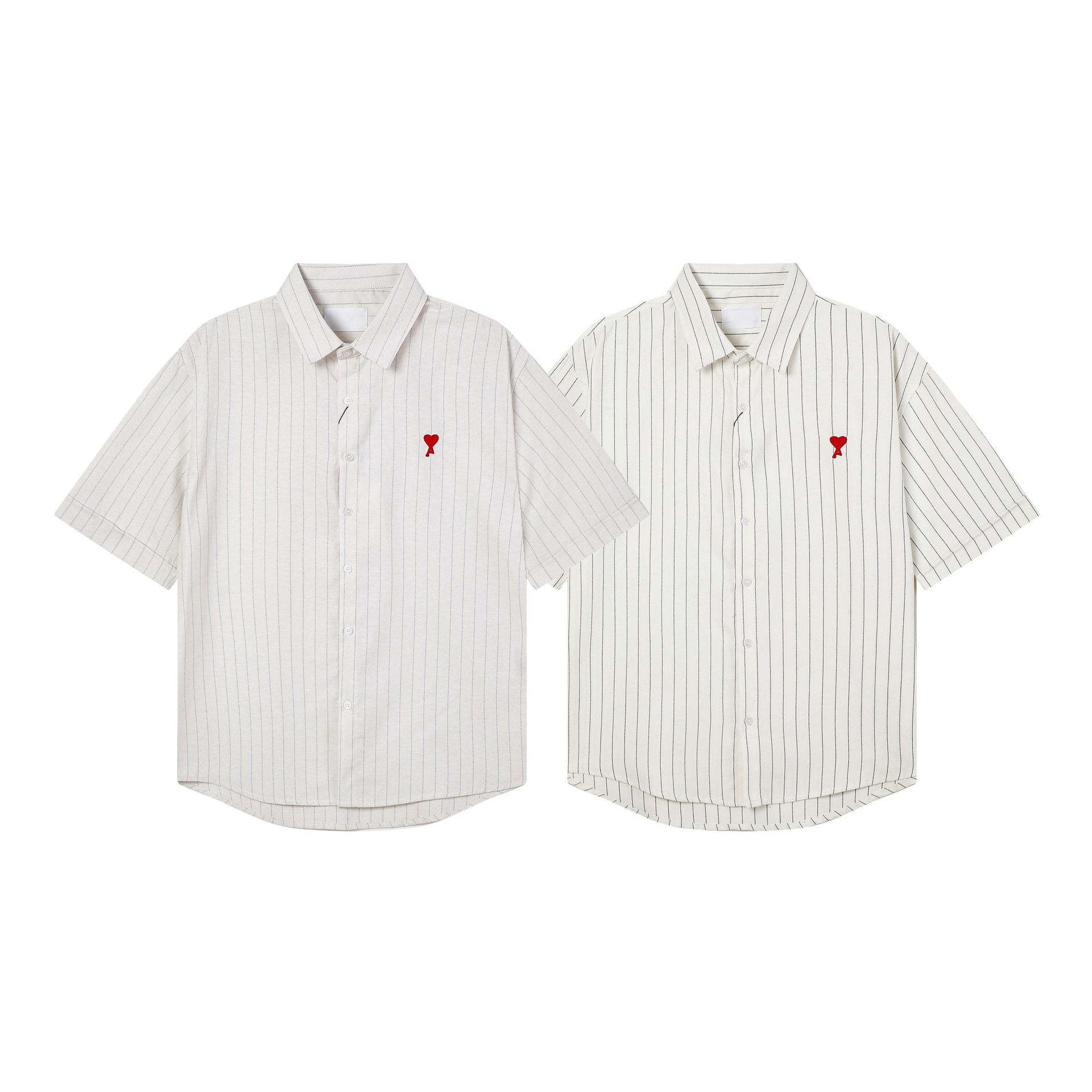 A* 작은 사랑 자수 셔츠 여름 새 스타일 남성과 여성 커플 솔리드 컬러 셔츠 캐주얼 루즈 코튼 탑 25