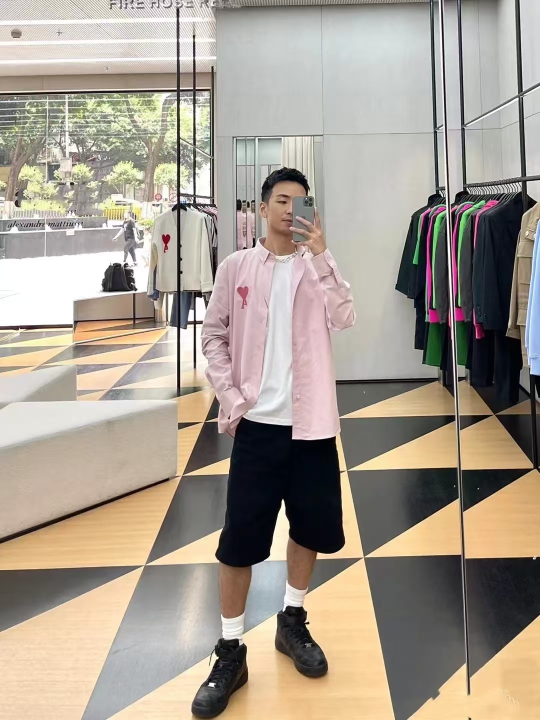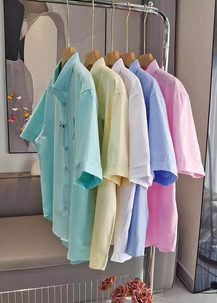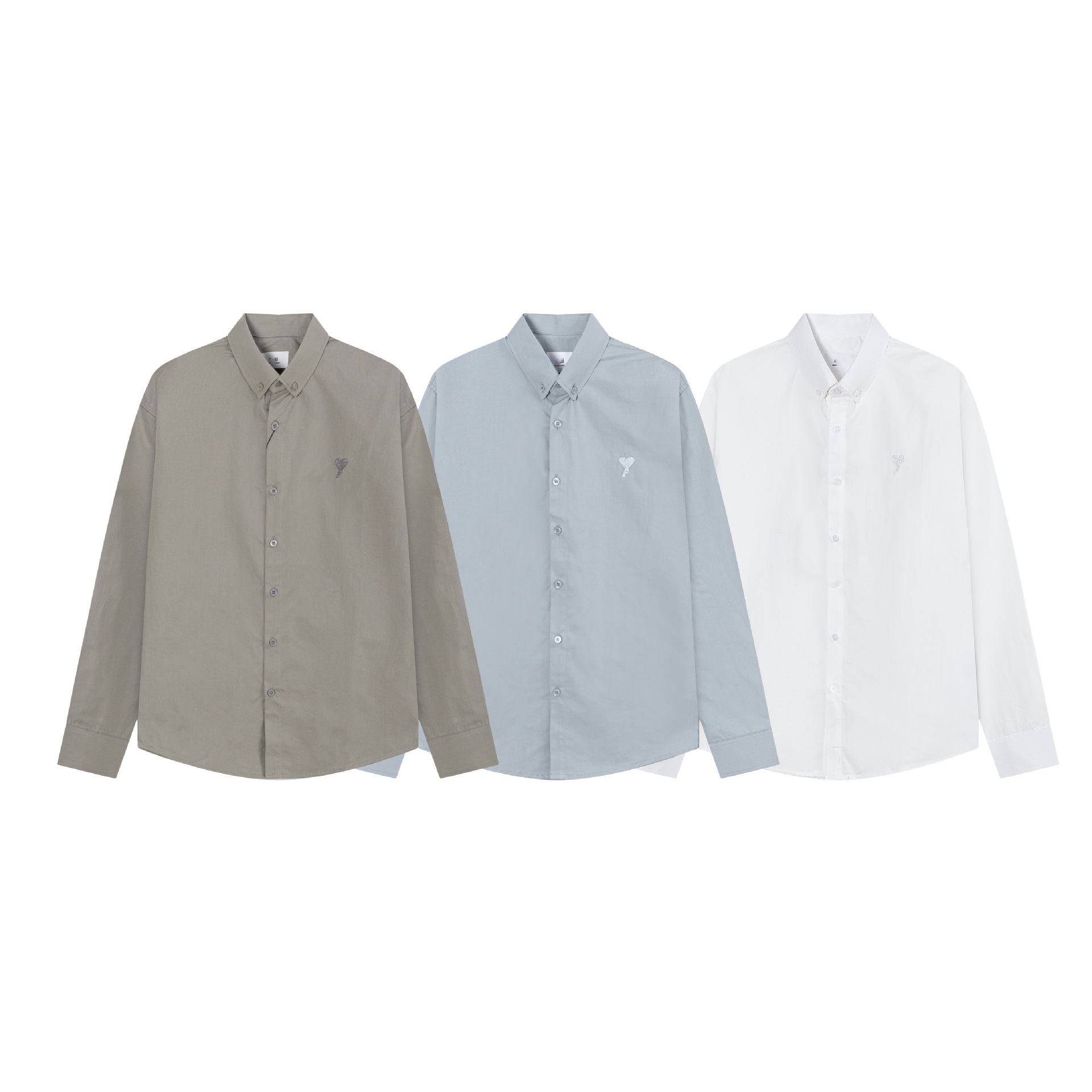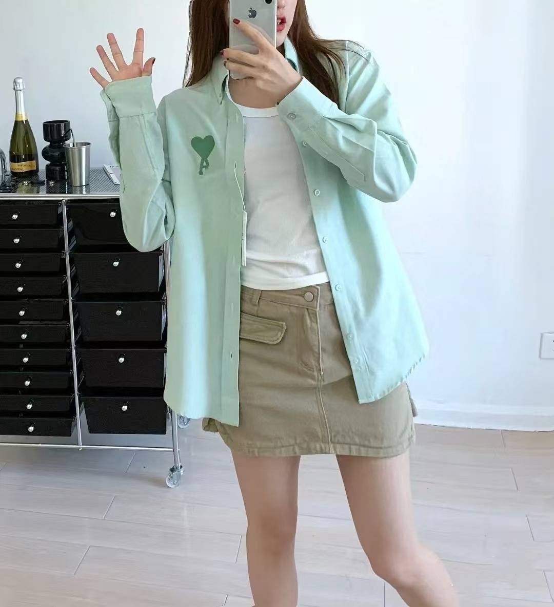 A* 작은 사랑 자수 셔츠 여름 새 스타일 남성과 여성 커플 솔리드 컬러 셔츠 캐주얼 루즈 코튼 탑 25