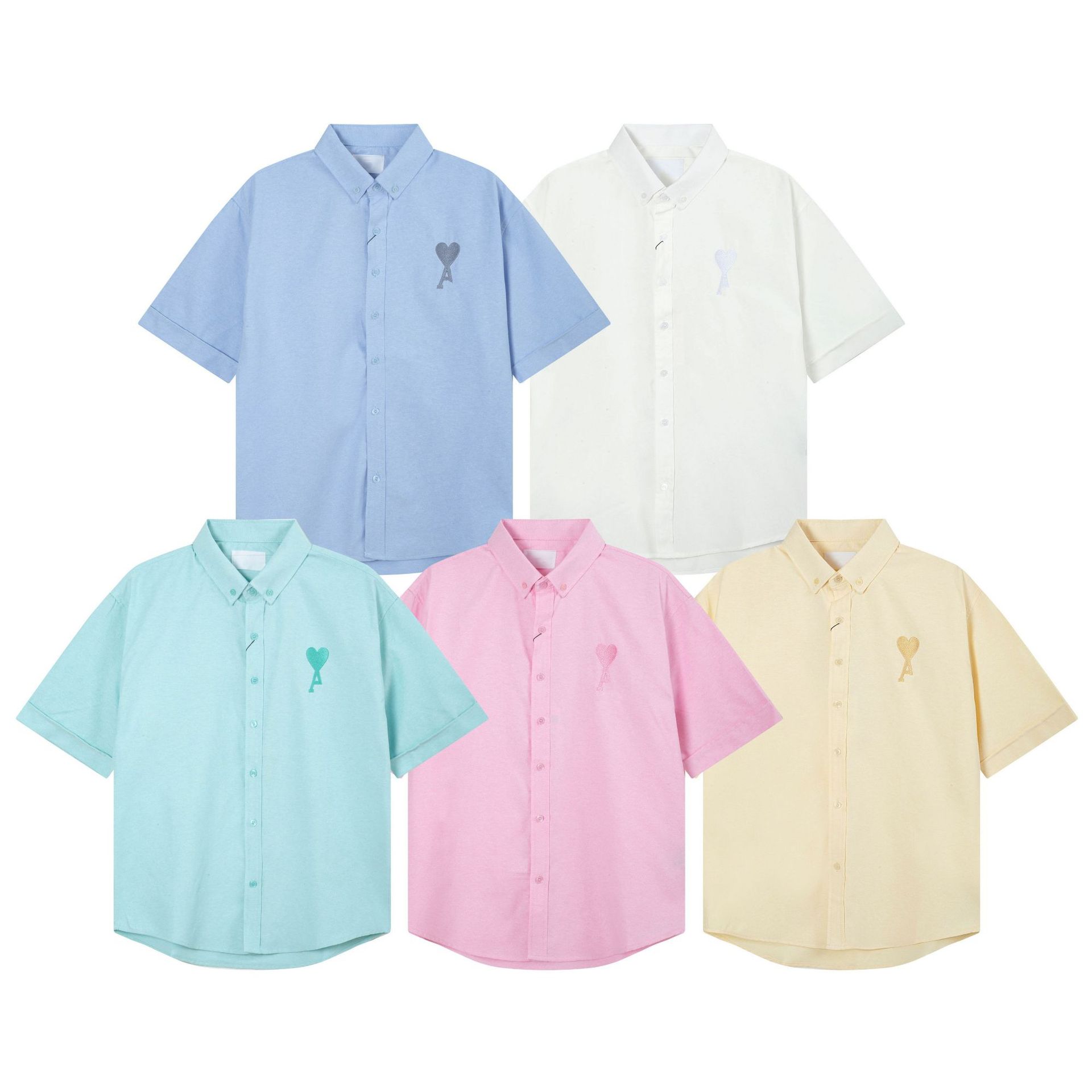 A* 작은 사랑 자수 셔츠 여름 새 스타일 남성과 여성 커플 솔리드 컬러 셔츠 캐주얼 루즈 코튼 탑 25스토어 가기