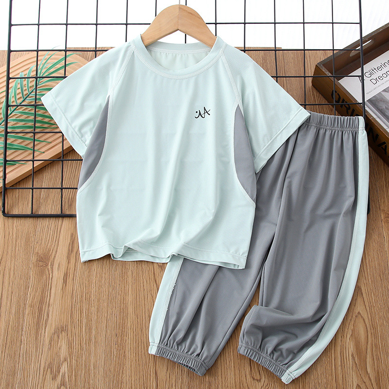 2025 여름 얇은 어린이 스포츠 정장 소년과 소녀 중대형 어린이 반팔 잠옷 속건성 얼음 실크 가정복