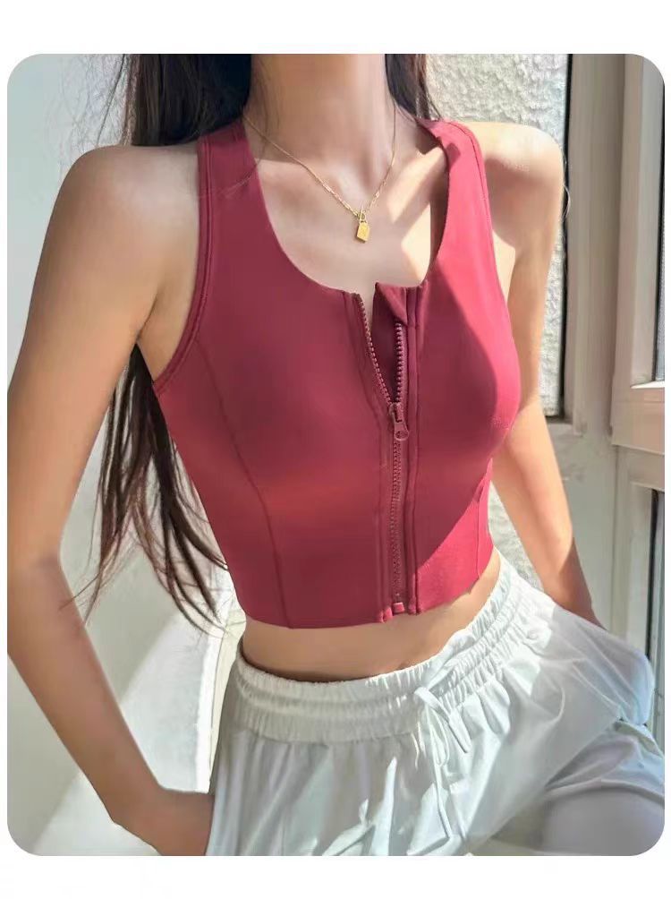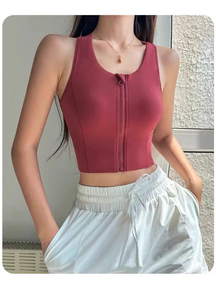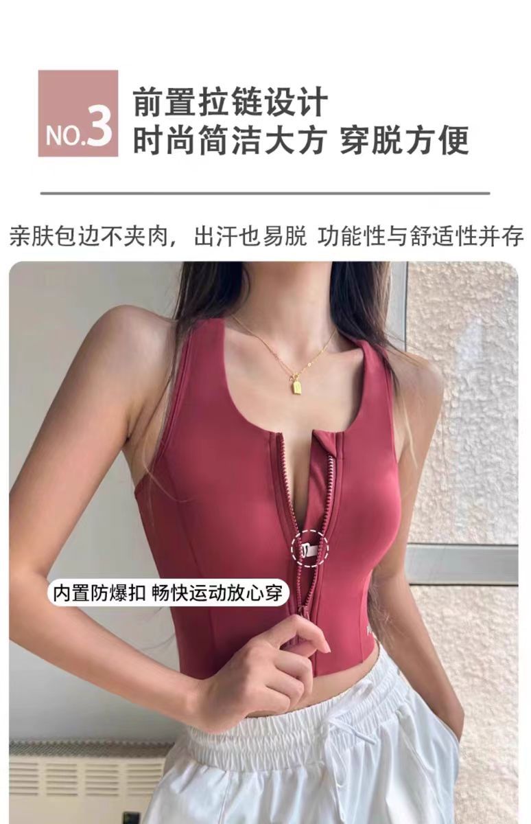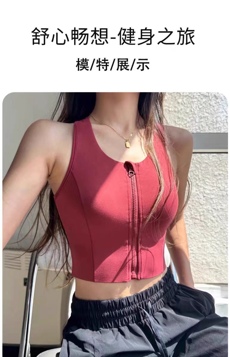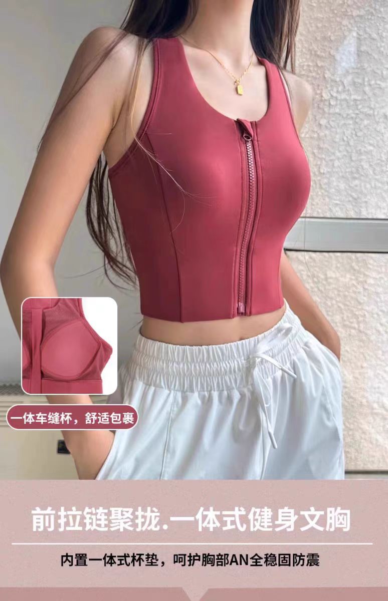 가슴 패드가 있는 고강도 스포츠 속옷, 앞 지퍼 브라, 충격 방지 러닝 피트니스 요가 조끼