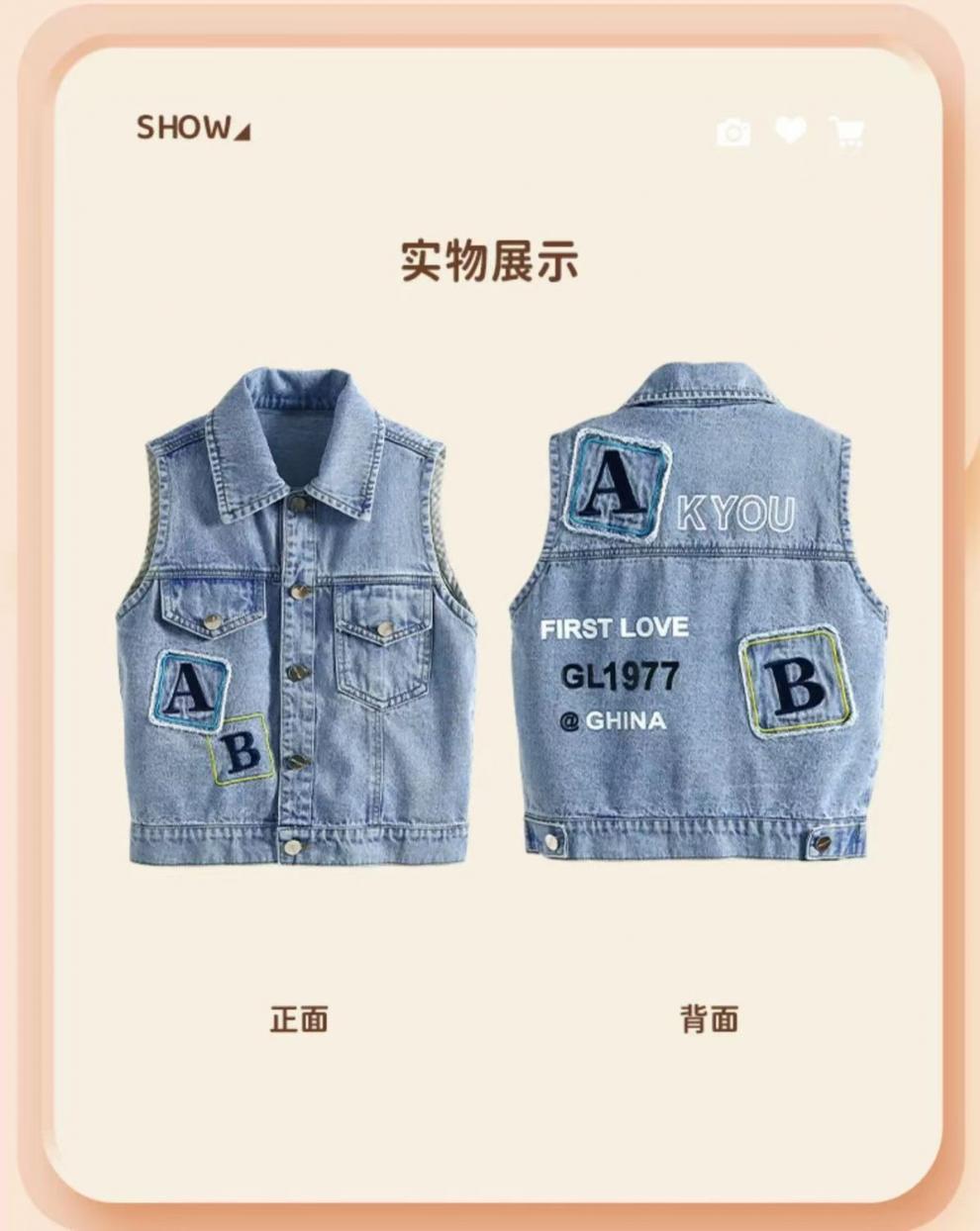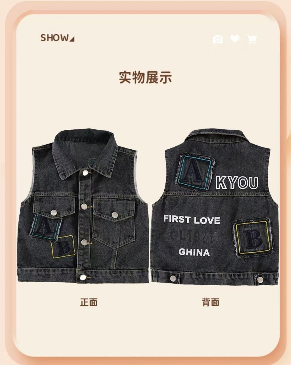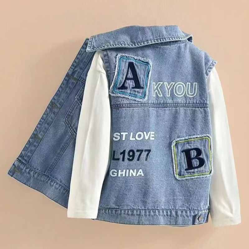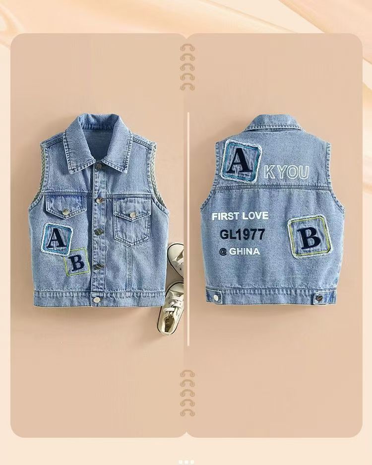 2025 새로운 여름 스타일 소년과 소녀 데님 조끼 캐주얼 외부 조끼 느슨한 수 놓은 어린이 조끼 가을 얇은 스타일스토어 가기