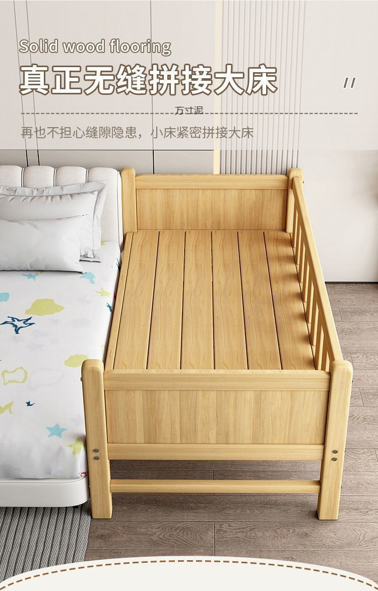 원목 베이비 접합 침대, 가드레일이 있는 넓은 어린이 침대, 두꺼운 아기 침대, 공주 침대 옆 대형 침대 공급망스토어 가기