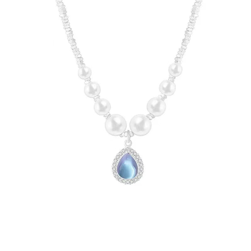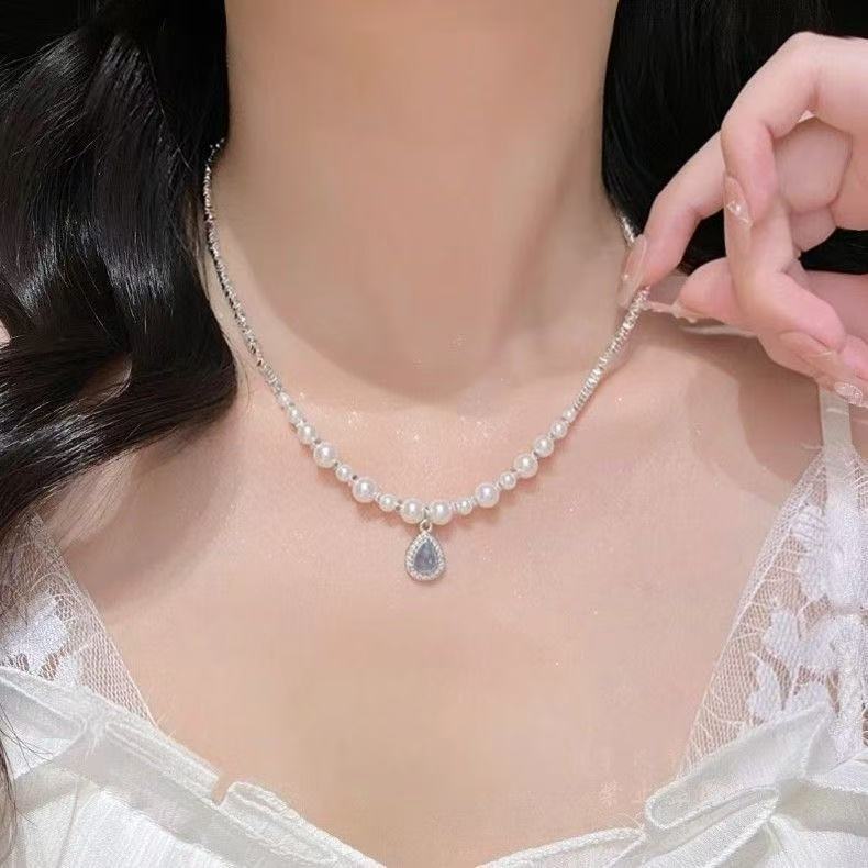 블루 워터 드롭 펜던트, 브로큰 실버 목걸이, 진주 라이트 럭셔리 틈새 디자인, 고급 액세서리스토어 가기