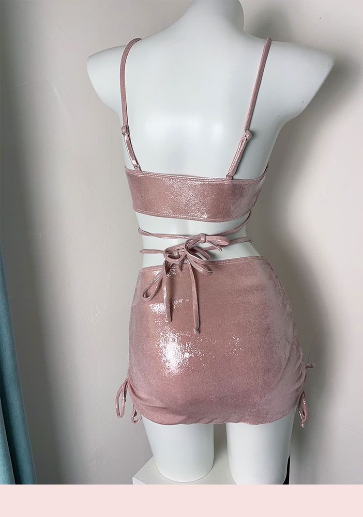 수영복 여성 섹시 비키니 다이아몬드 체인 반짝이 파우더 푸시업 3피스 슬리밍 스플릿 3각 휴가 온천 수영복