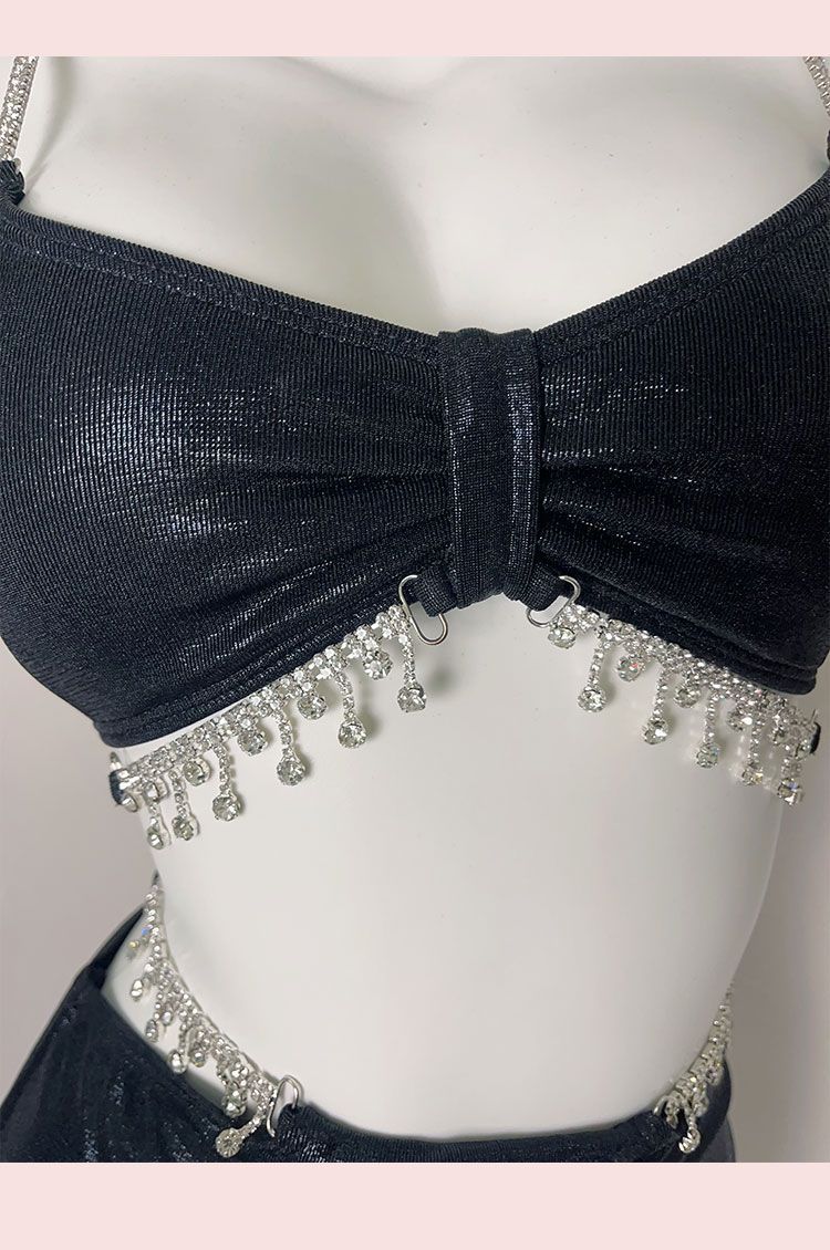 수영복 여성 섹시 비키니 다이아몬드 체인 반짝이 파우더 푸시업 3피스 슬리밍 스플릿 3각 휴가 온천 수영복스토어 가기