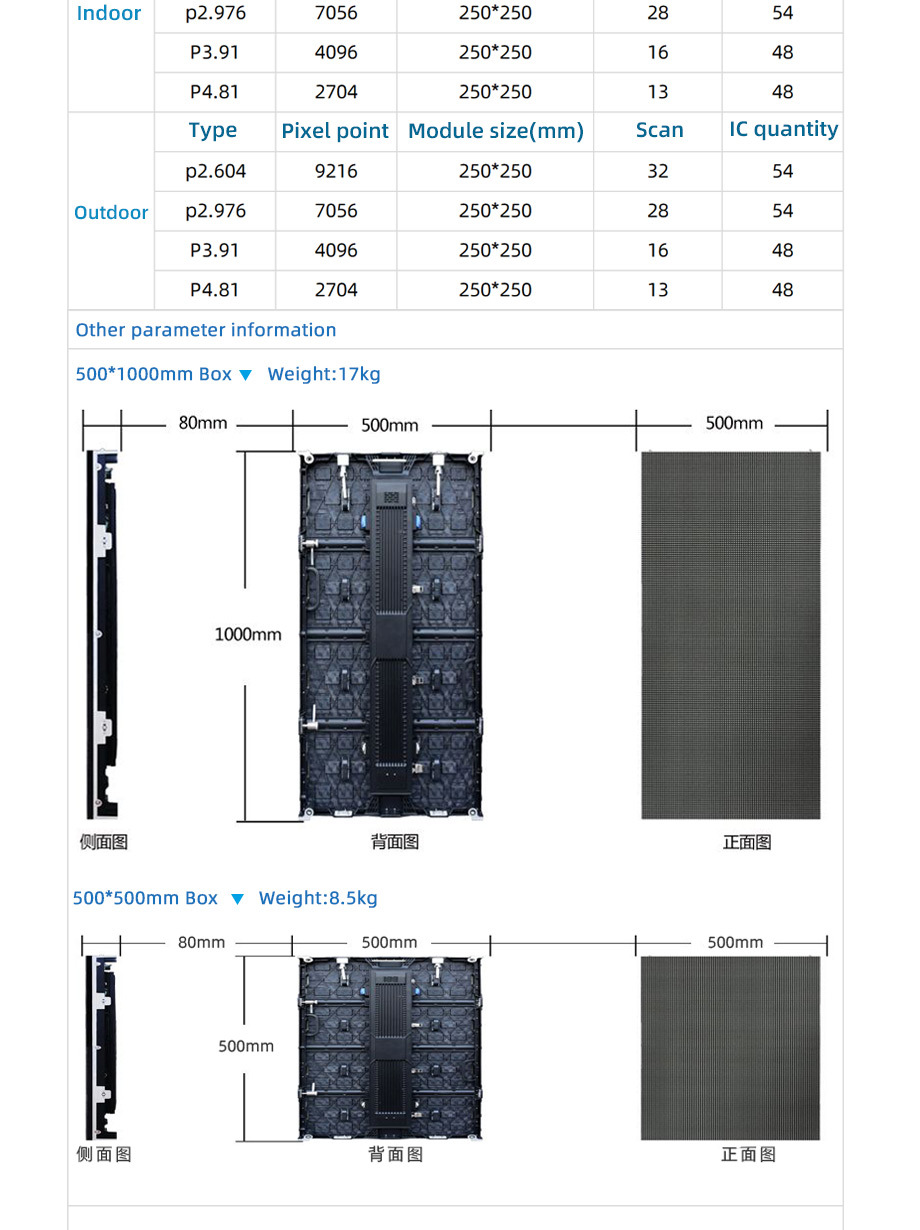• P2.976 (500*500 박스, 모듈, 전원공급장치, 수신카드, )