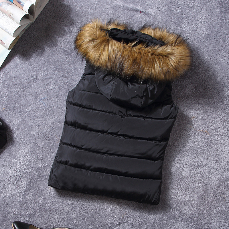 2017秋冬季韩版女装新款羽绒棉大毛领背心连帽马甲女式马夹