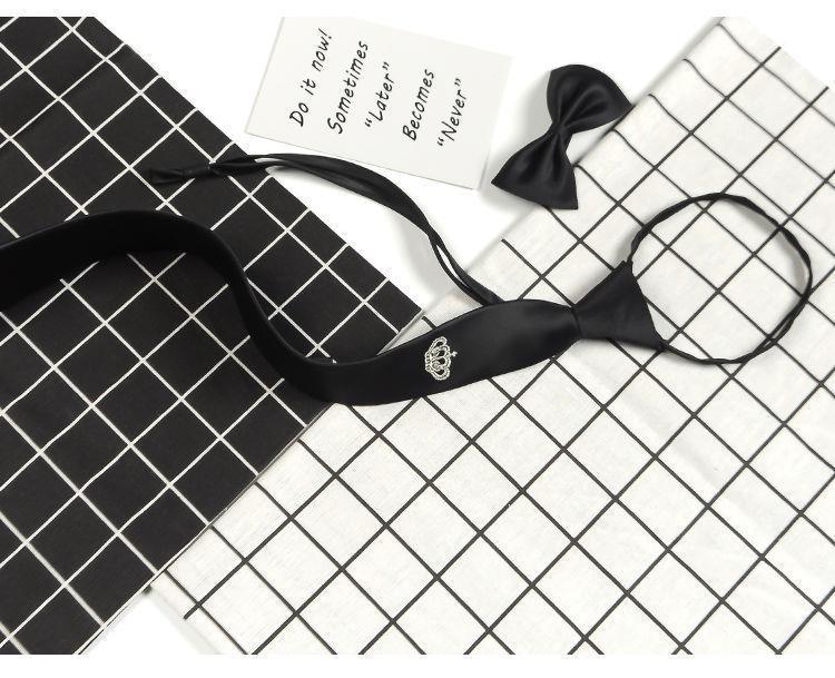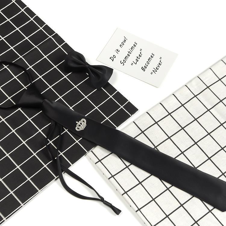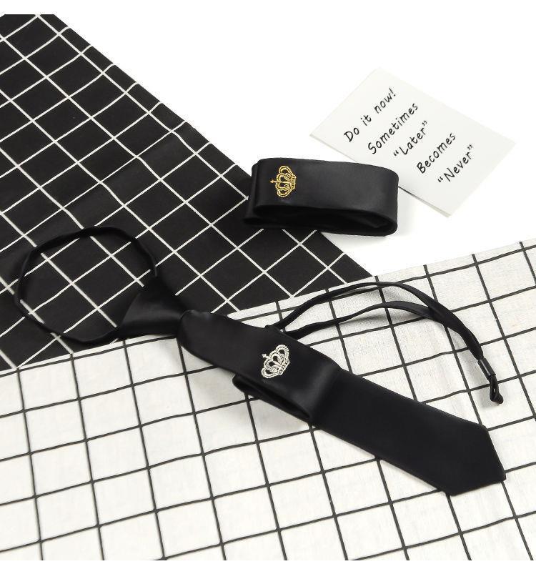 Ins 트렌디 남성과 여성 작은 넥타이 크라운 자수 헤어 스타일리스트 얇은 검정색 5cm 게으른 액세서리 대학 스타일스토어 가기