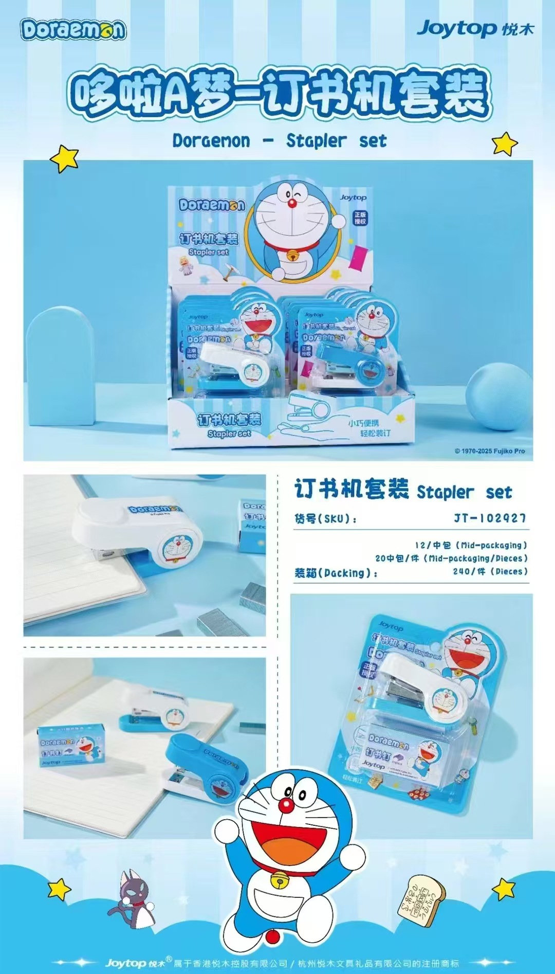 홍콩 Yue Mu 도라에몽 스테이플러 세트 미니 작고 편리한 만화 간편 제본스토어 가기