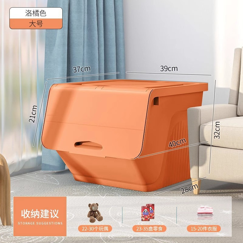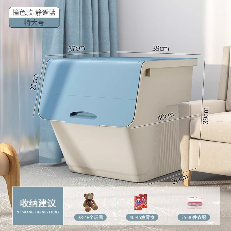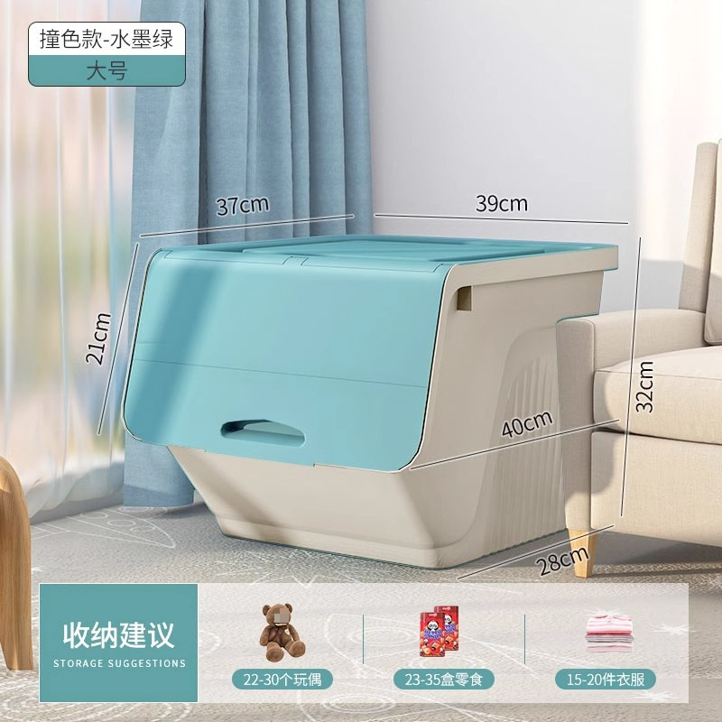 장난감 보관 상자 가정용 하마 입 전면 개방형 플립 탑 보관 상자 어린이 그림책 스낵 의류 보관 상자