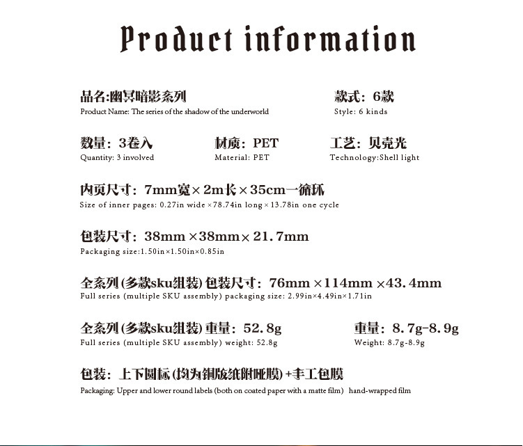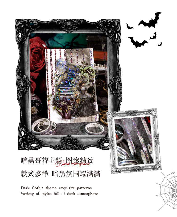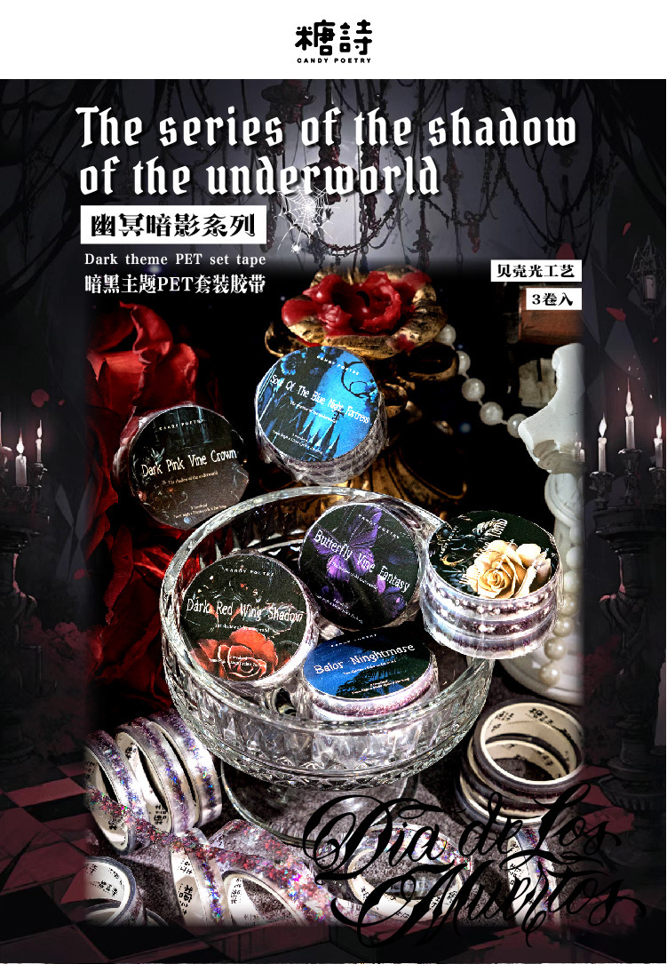 설탕시 애완 동물 테이프 세트 유령 밤 그림자 시리즈 어두운 테마 소재 손 계정 DIY 장식 구오 카드 콜라주