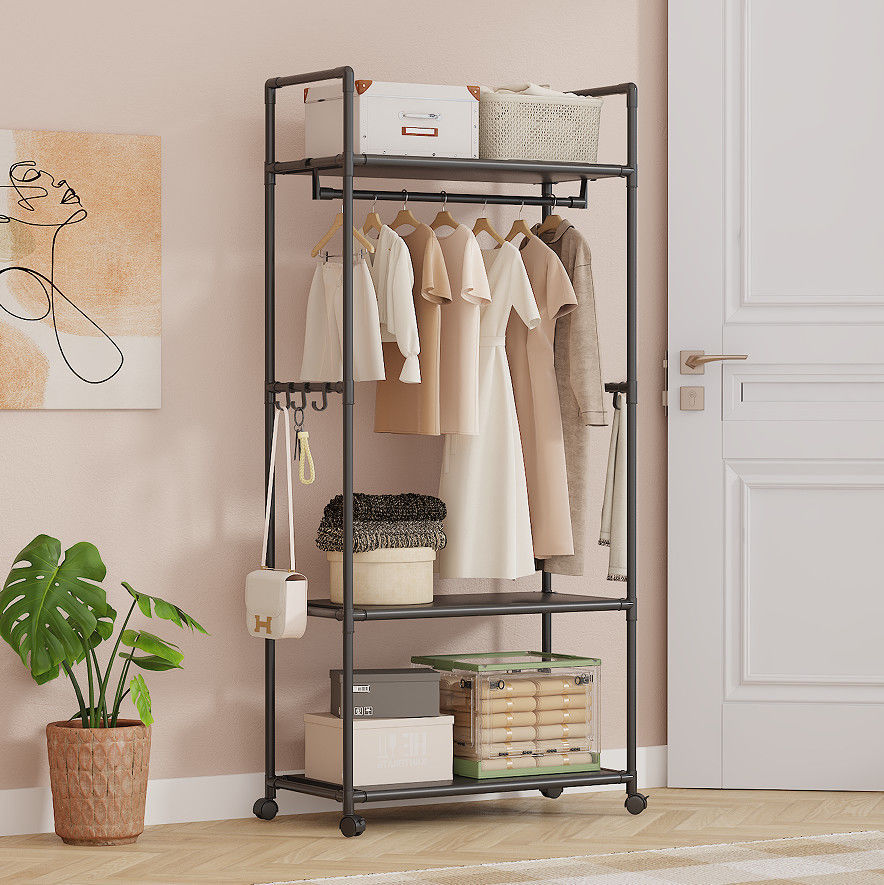 간단한 다기능 코트 랙 스토리지 랙 홈 기숙사 바닥 스탠딩 옷 걸이 이동식 옷 랙 바닥 스탠딩