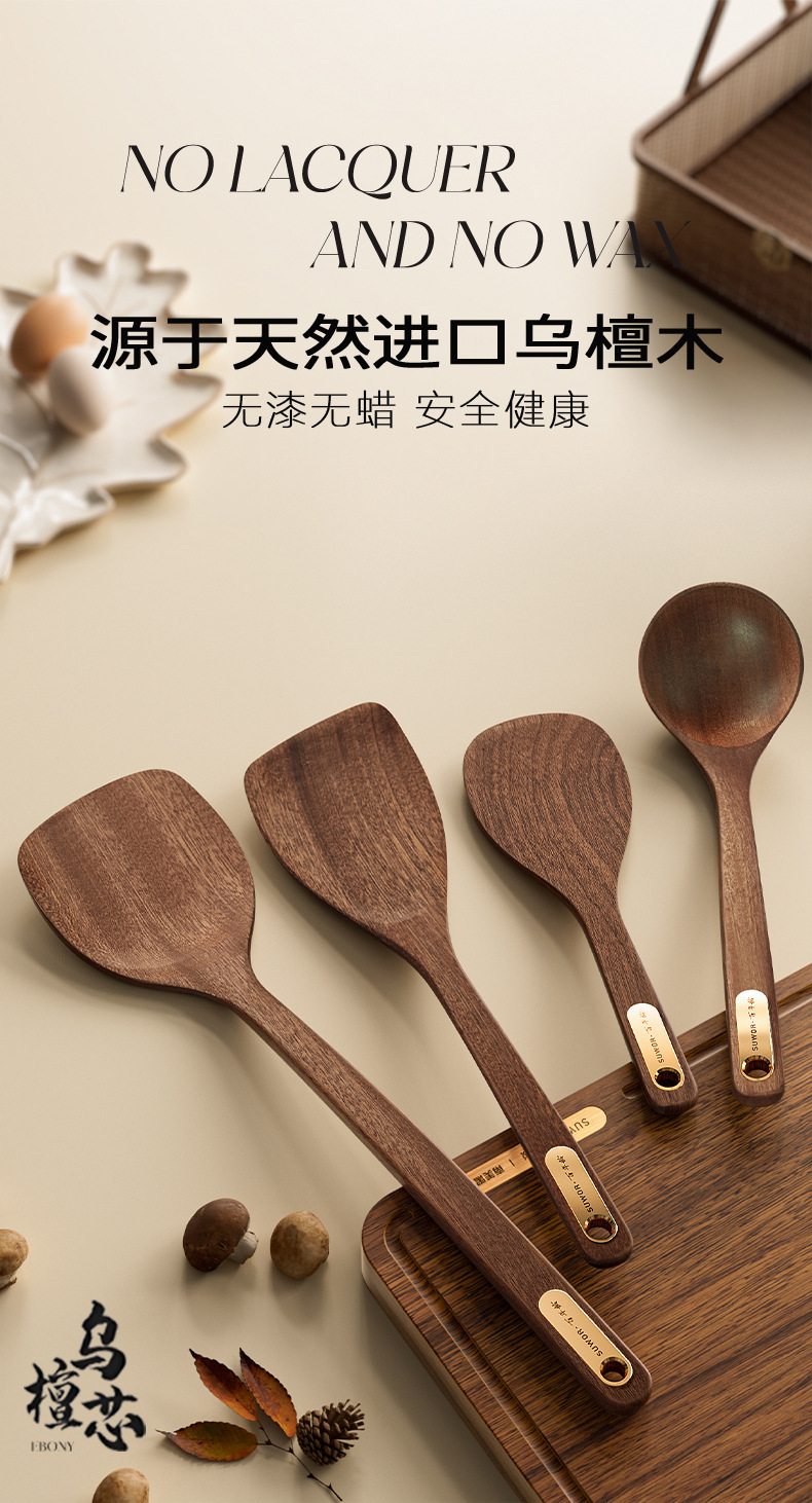주걱, 골드 라벨 흑단 주걱, 붙지 않는 요리 주걱, 요리용 나무 주걱, 가정용 고온 방지 및 화상 방지