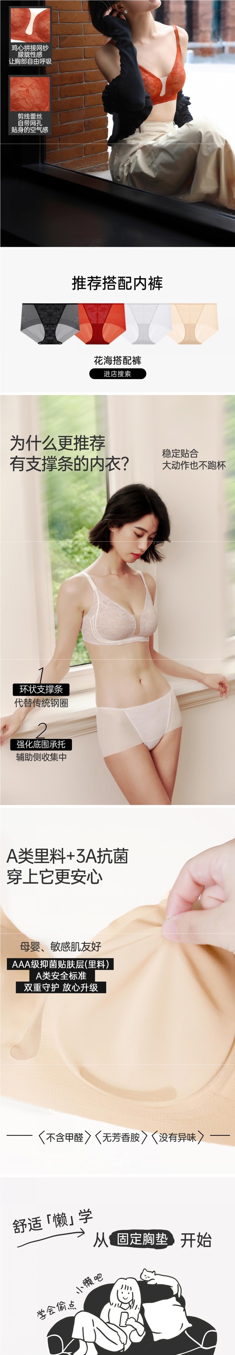 Ives [Flower Sea] 와이어 프리 돌핀 컵 속옷 작은 가슴 마이크로 푸시업 소프트 서포트 레이스 통기성 브라 백스토어 가기