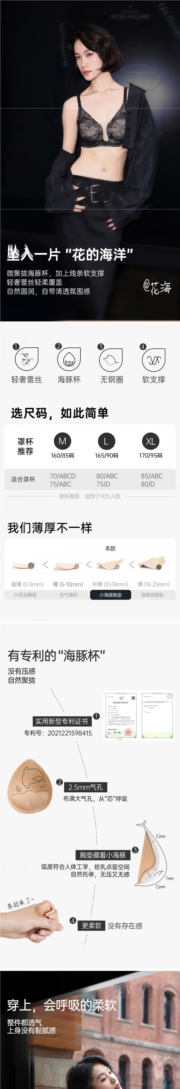 Ives [Flower Sea] 와이어 프리 돌핀 컵 속옷 작은 가슴 마이크로 푸시업 소프트 서포트 레이스 통기성 브라 백