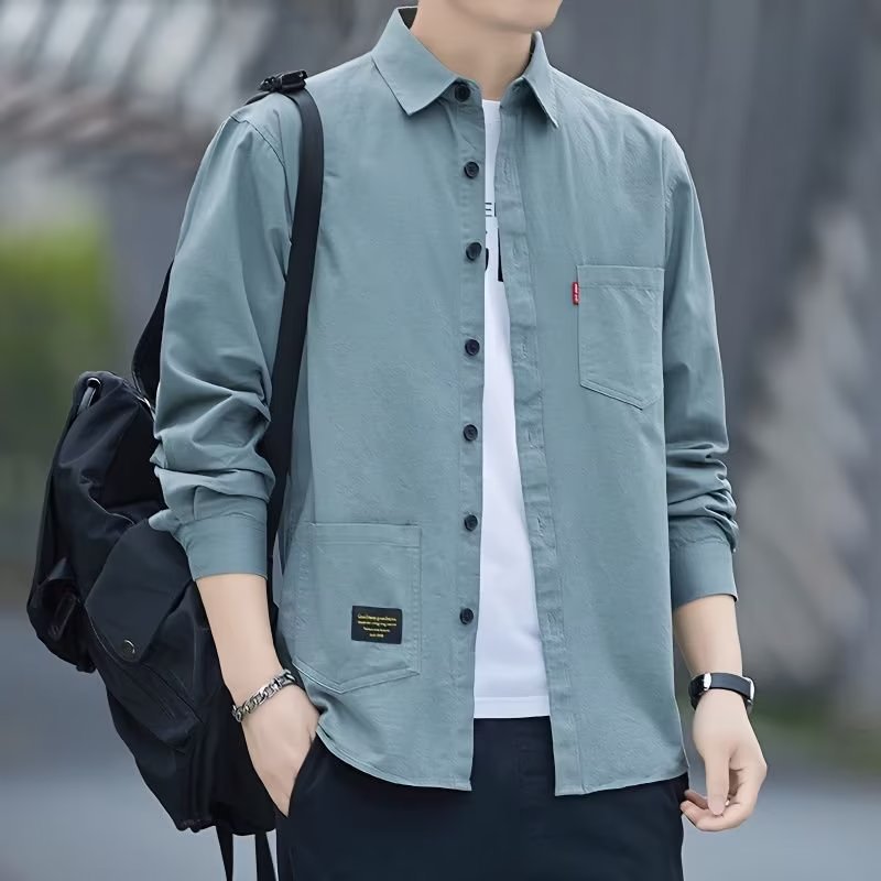 2025 봄, 가을 남성 작업복 긴팔 셔츠 캐주얼 루즈 버전 노다림 비즈니스 셔츠 남성 자켓 크로스보더스토어 가기